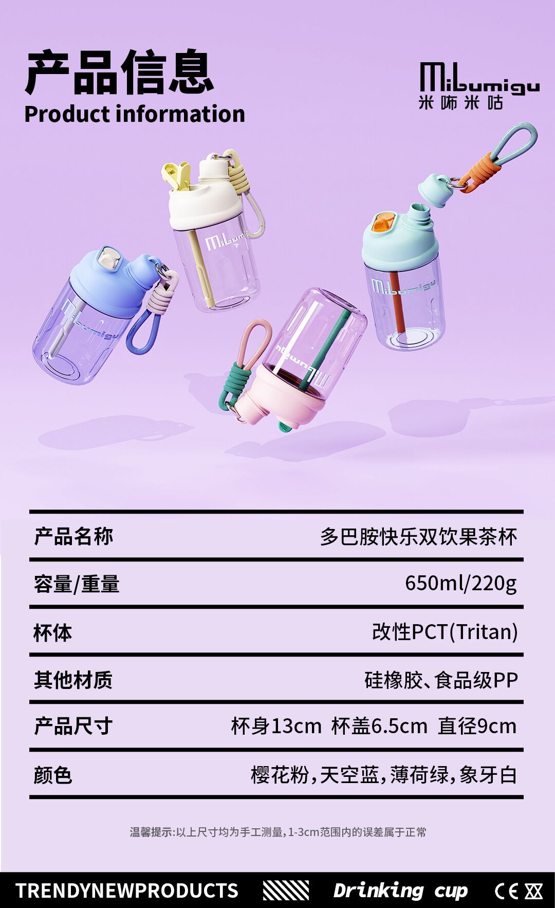 트라이탄 빨대가 있는 고급스러운 휴대용 이중 음료컵, 학생용 휴대컵, 선물컵, 맞춤형 컬러 인쇄 로고