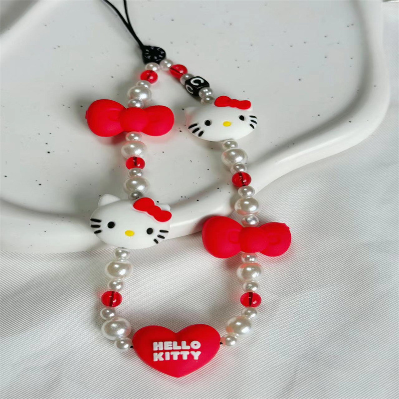 Ju Yiyi 같은 귀여운 휴대 전화 체인 diy 구슬 cd 끈 펜던트 카메라 펜던트 잃어버린 로프 그물 레드