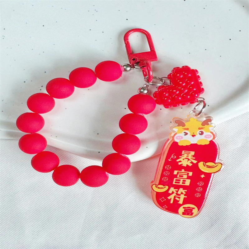 • 빨간 구슬 재산 기호 키 체인