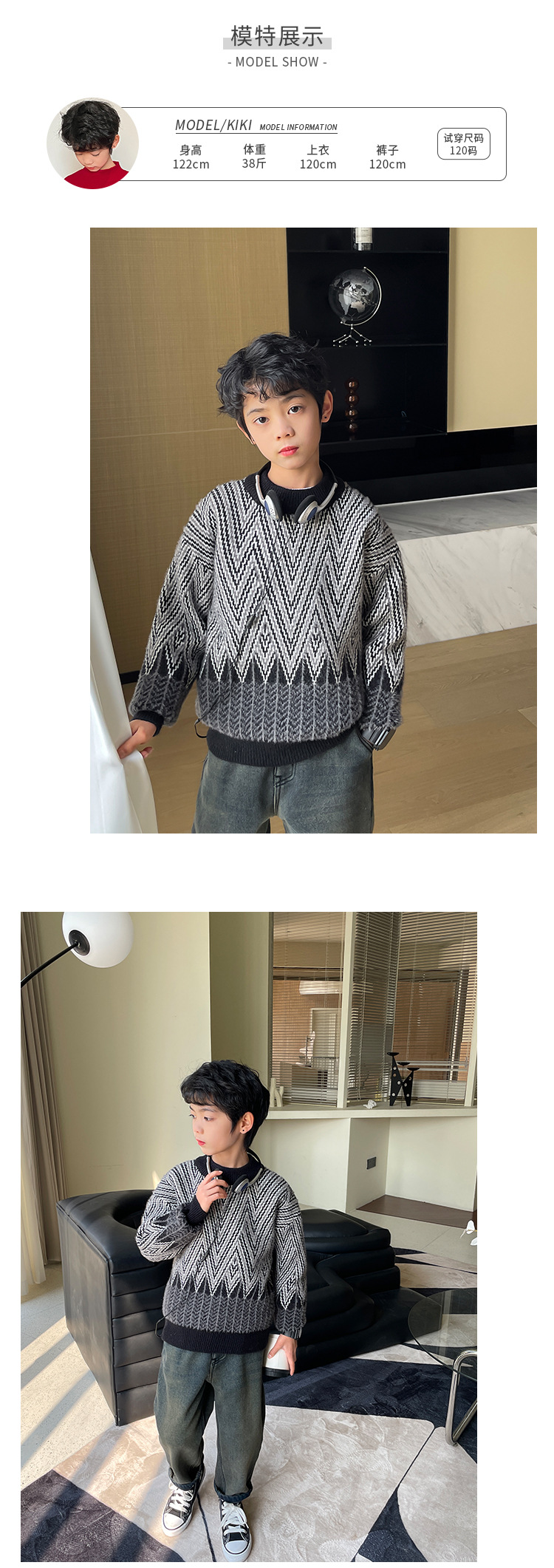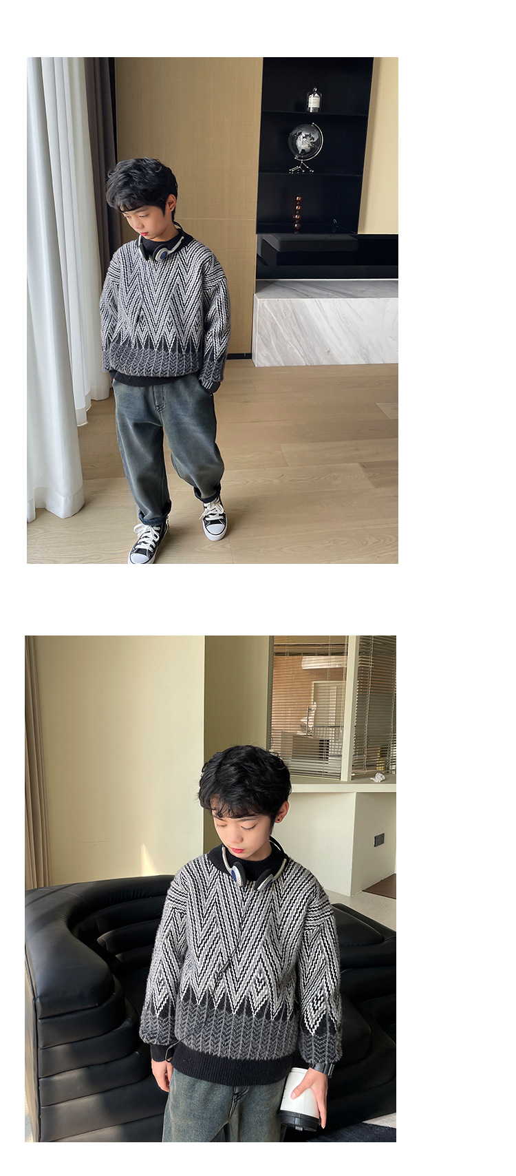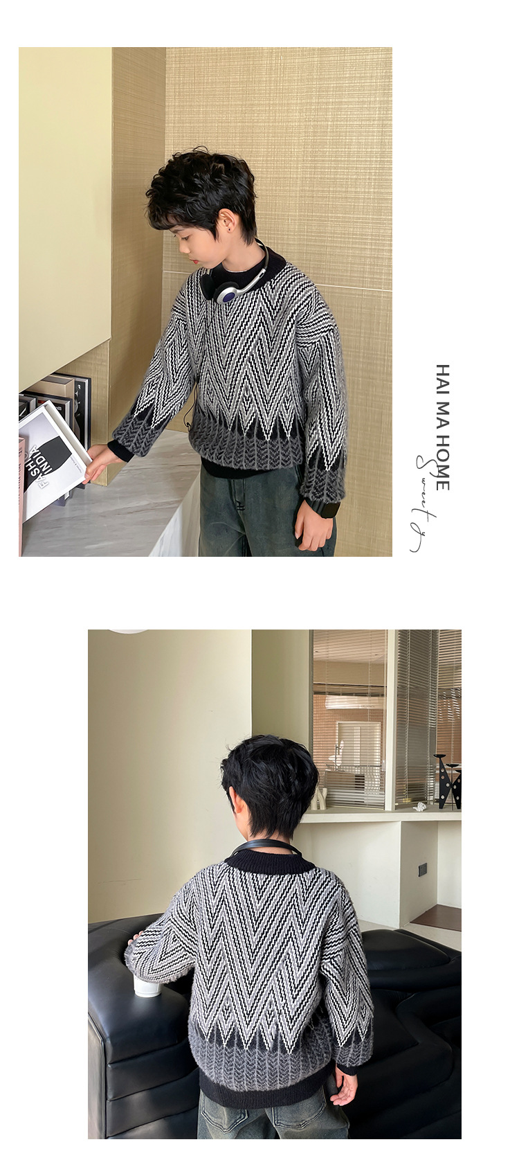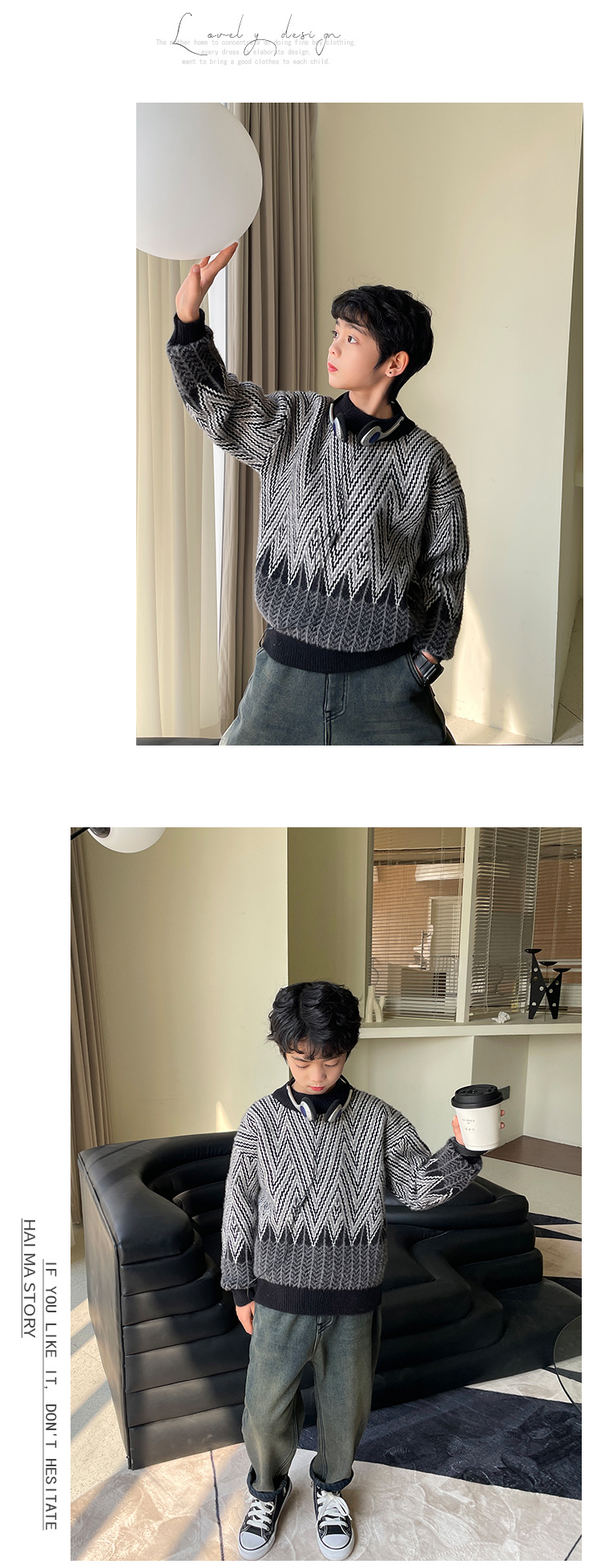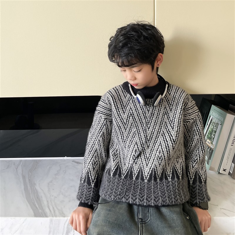 Haimajia 소년의 세련된 헤비 듀티 니트 스웨터 2023 겨울 새로운 어린이 서양식 겨울 최고의 한국식 아동복