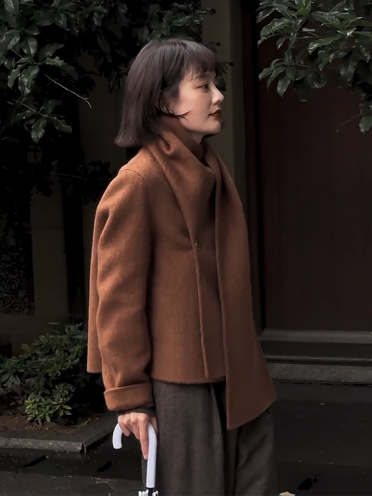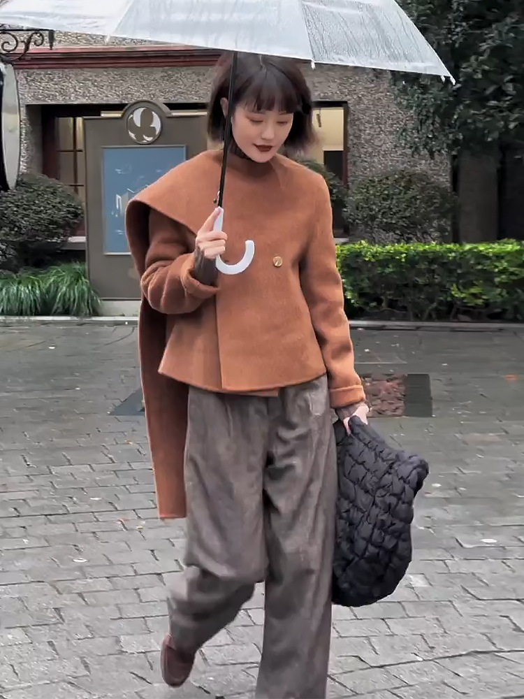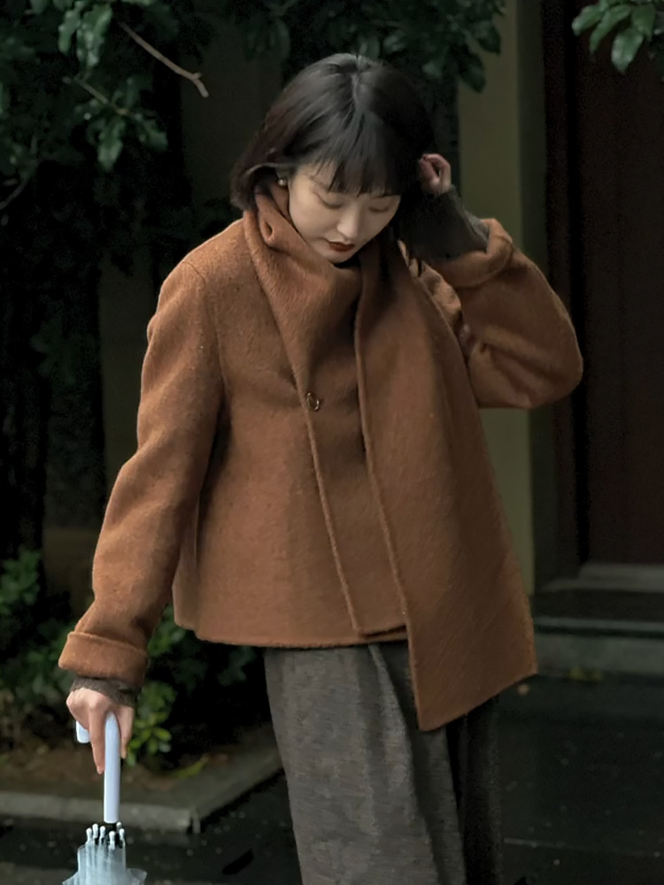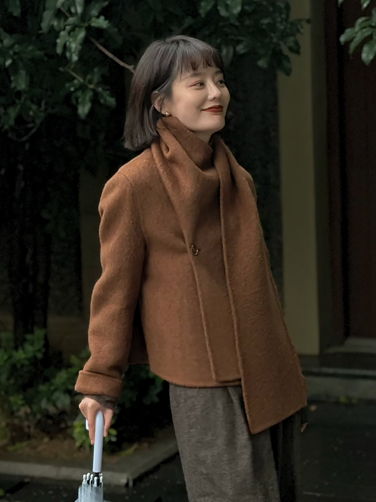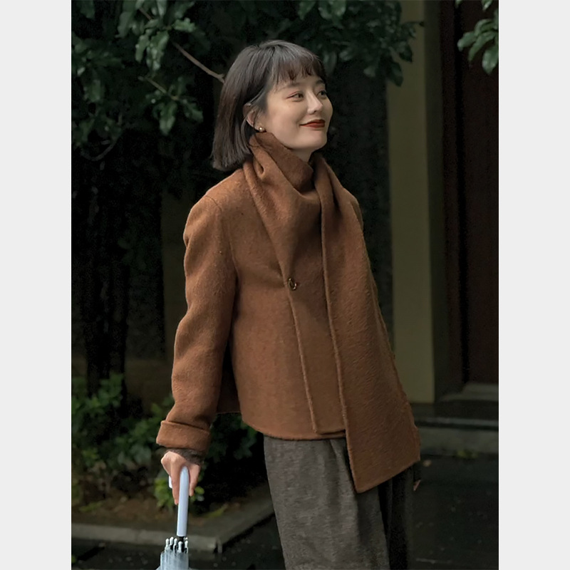 YT247578 올해 인기있는 아름다운 다크 브라운 모직 샤넬 스타일 코트 여성을위한 2023 새로운 인기 가을복스토어 가기