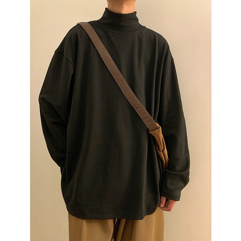 드 벨벳 바닥 셔츠 남성 긴팔 봄과 가을 느슨한 내부 스웨터 티셔츠 하프 터틀넥 홍콩 스타일, 소년 가을 옷