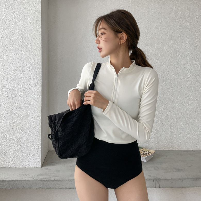 2023 한국 새로운 수영복 섹시 슬림 긴 소매 재킷 보수적 인 높은 허리 배꼽 분할 수영복 여성용 3 피스 세트