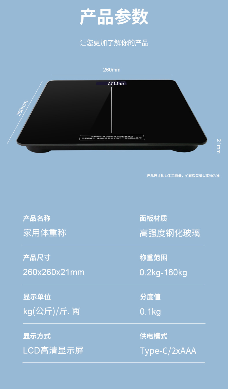 높은 정밀도 무게 장치 무게 규모 바디 스케일 가정용 유리 전자 스케일 얇은 그램 스케일 슈퍼마켓 전자 스케일스토어 가기