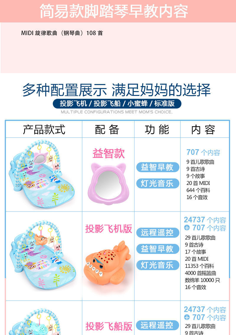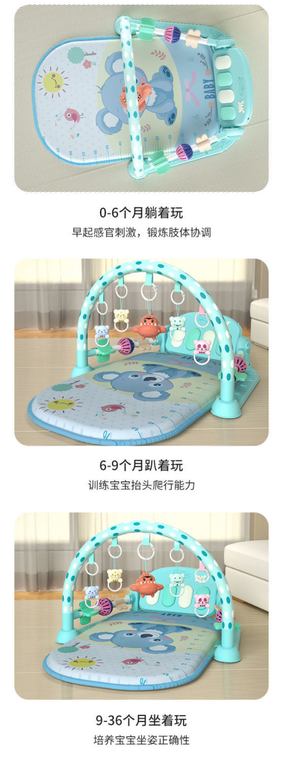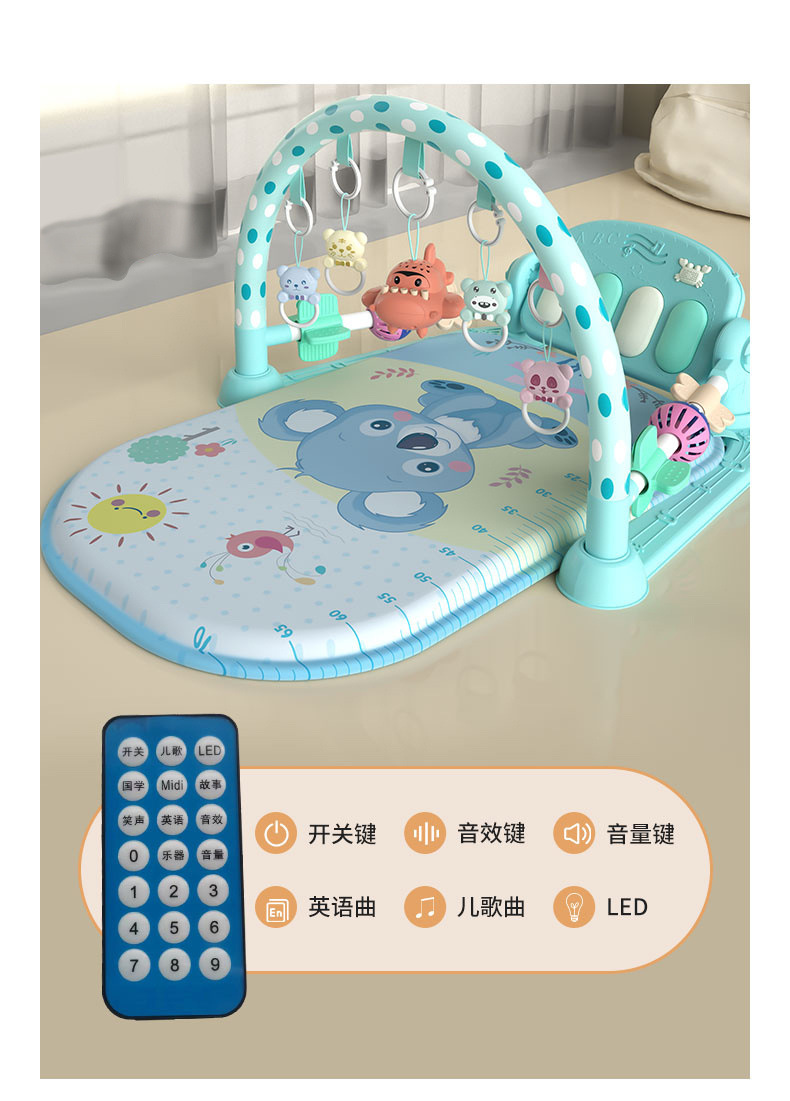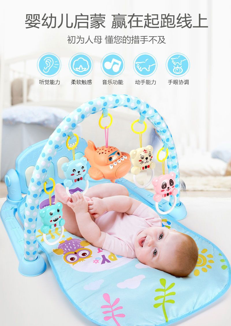 아기 페달 피아노 소리와 가벼운 음악 피트니스 랙 유아 장난감 게임 담요 아기 장난감 0-1 세스토어 가기