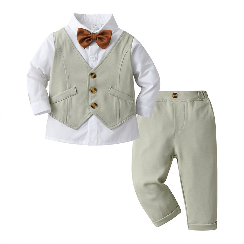 대외 무역 가짜 조끼 투피스 어린이 세트 국경 간 남성 가을 긴 소매 1 년 된 작은 세트 새 소년 원피스