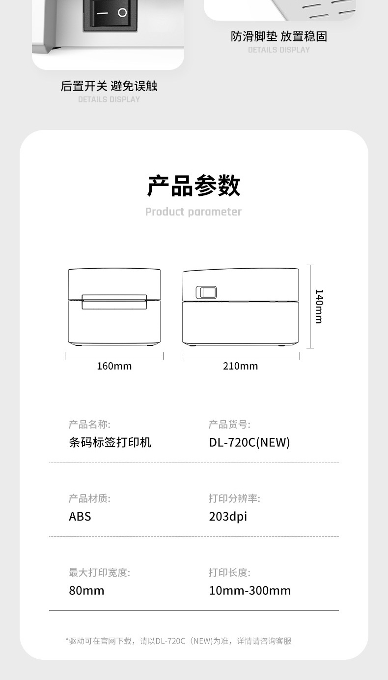 델리 열 라벨 프린터 DL-720C(NEW) 전자 표면 단일 접착 바 코드 2 차원 코드 프린터