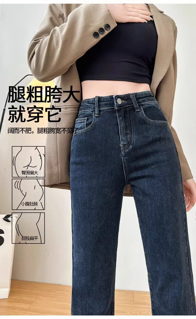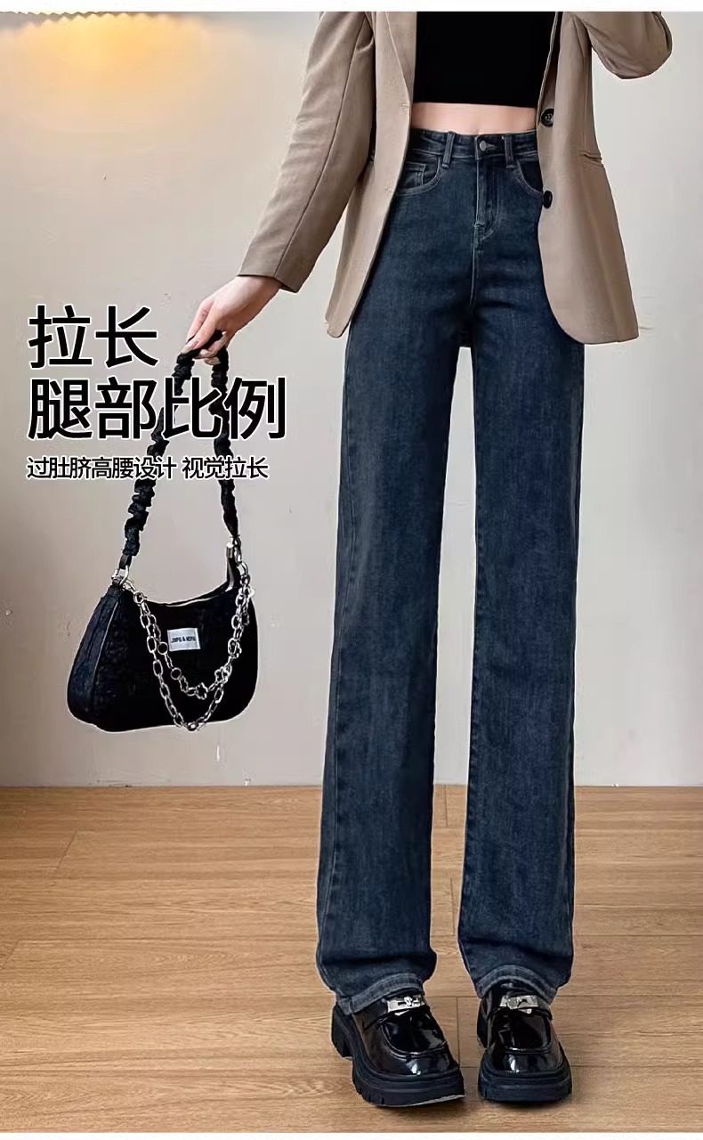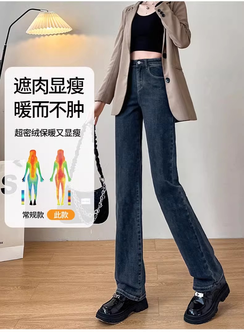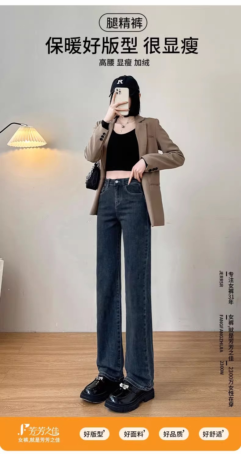 벨벳 스트레이트 진 2025년 신상 가을 겨울 하이웨이스트 겨울용 두꺼운 슬림핏 와이드 팬츠 여성용스토어 가기