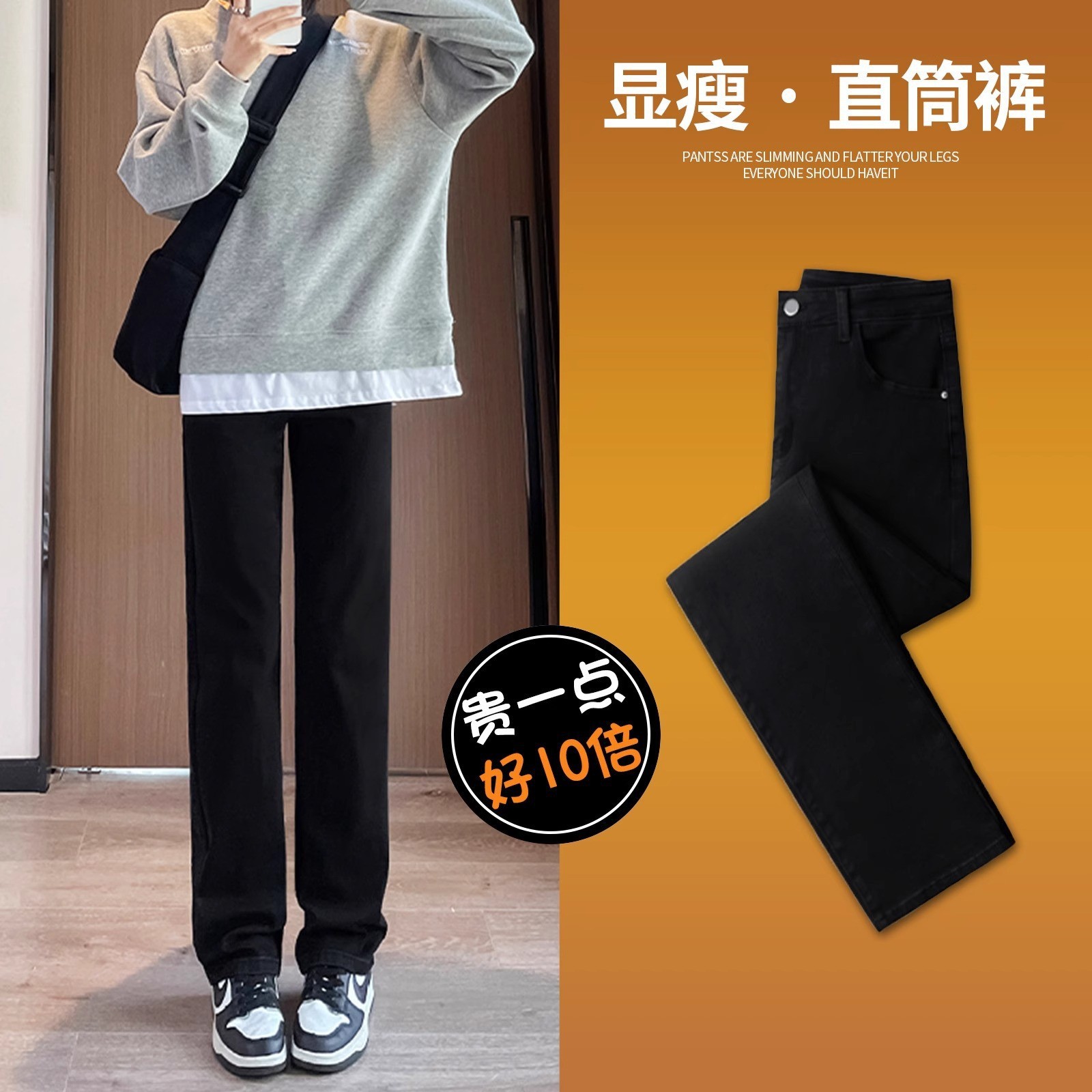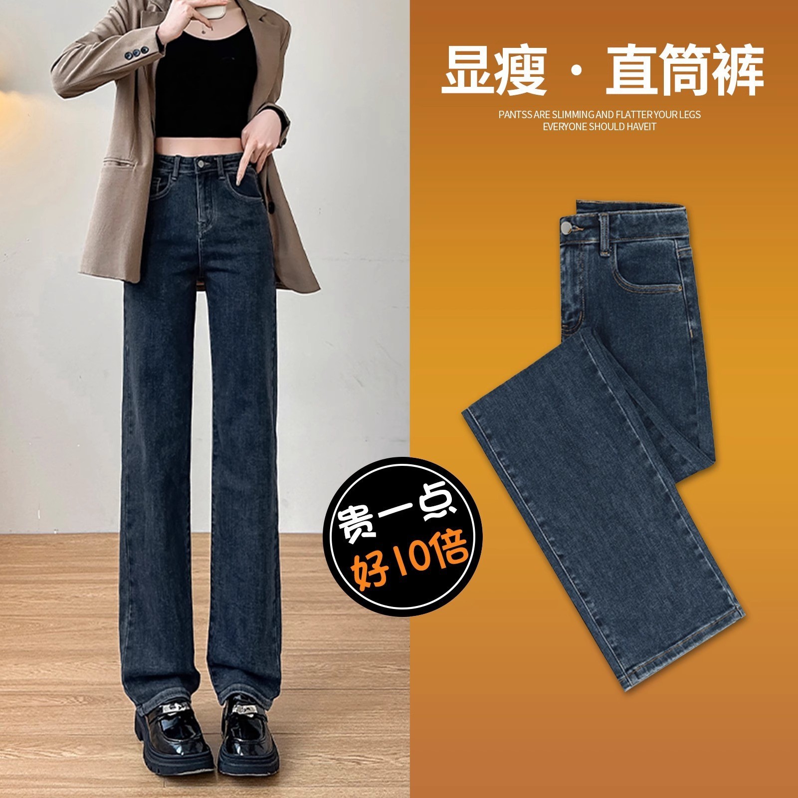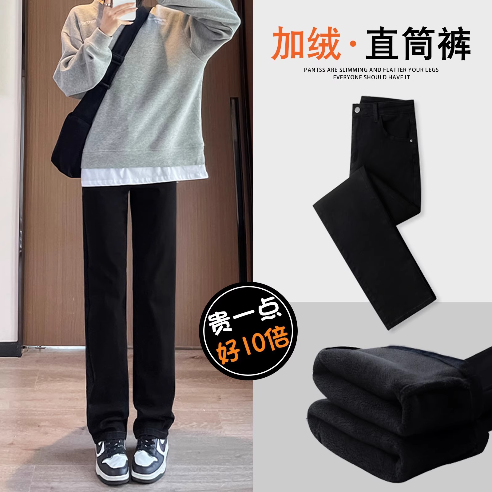 벨벳 스트레이트 진 2025년 신상 가을 겨울 하이웨이스트 겨울용 두꺼운 슬림핏 와이드 팬츠 여성용스토어 가기