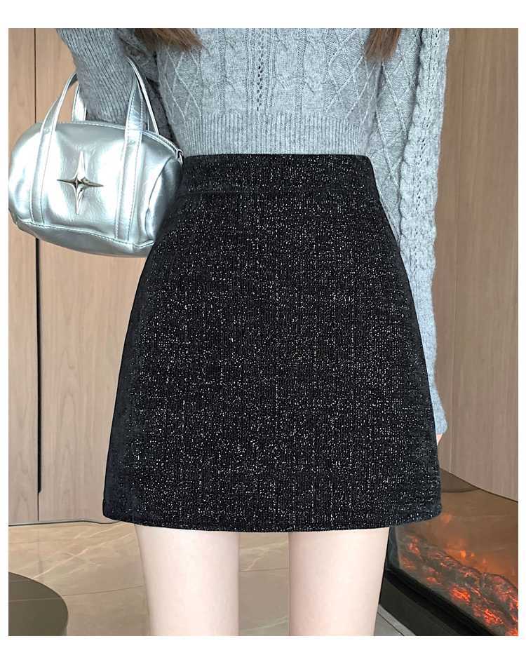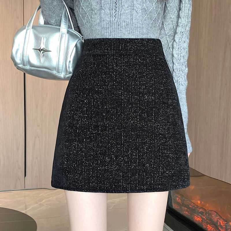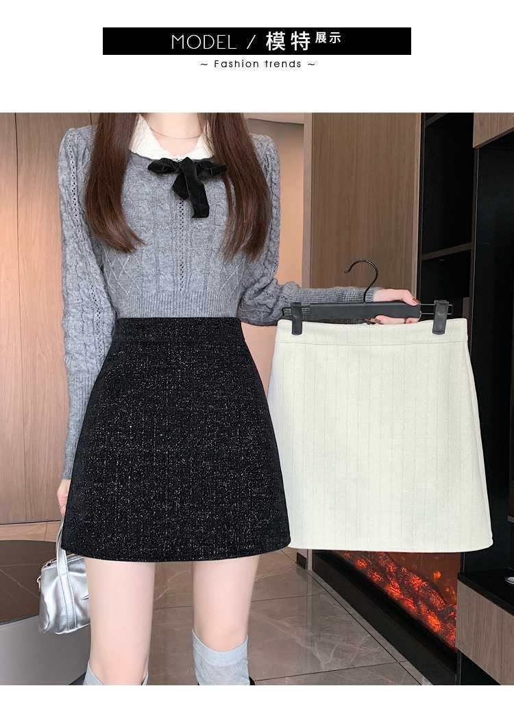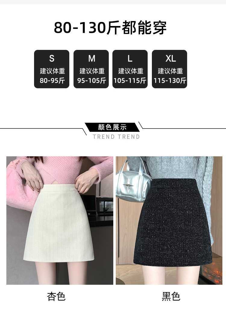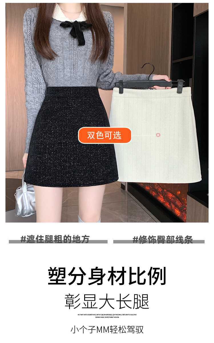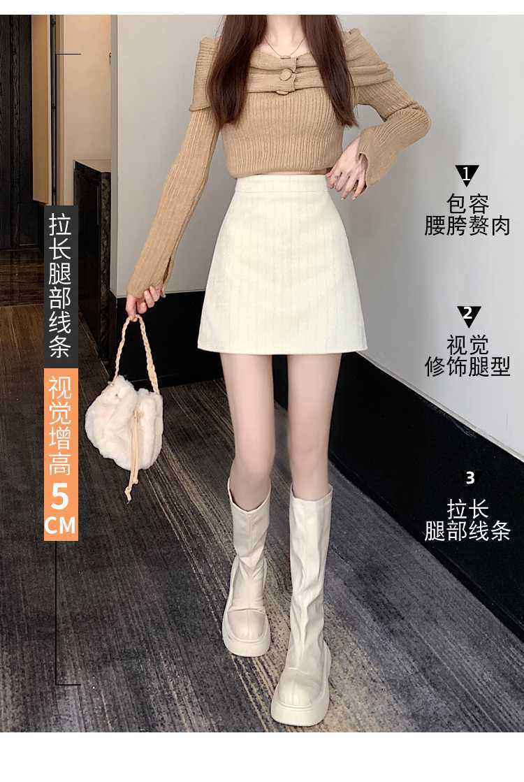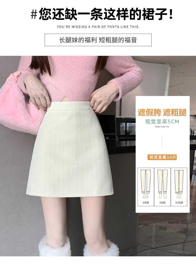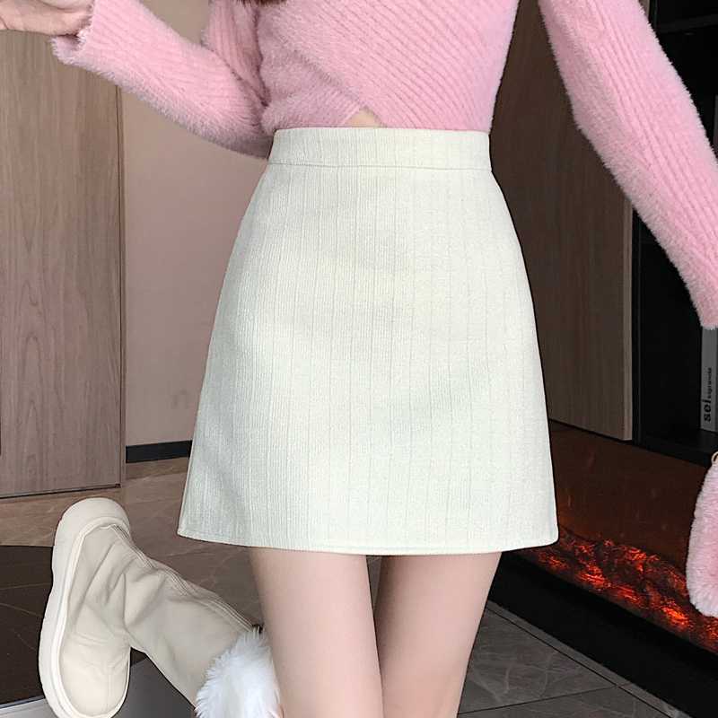 실제 비디오 3 표준 틈새 힙합 간단한 양모 하이 웨이스트 스커트 여성의 2023 단색 두꺼운 따뜻한 스커트스토어 가기