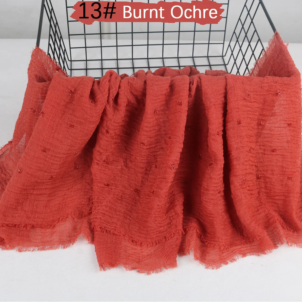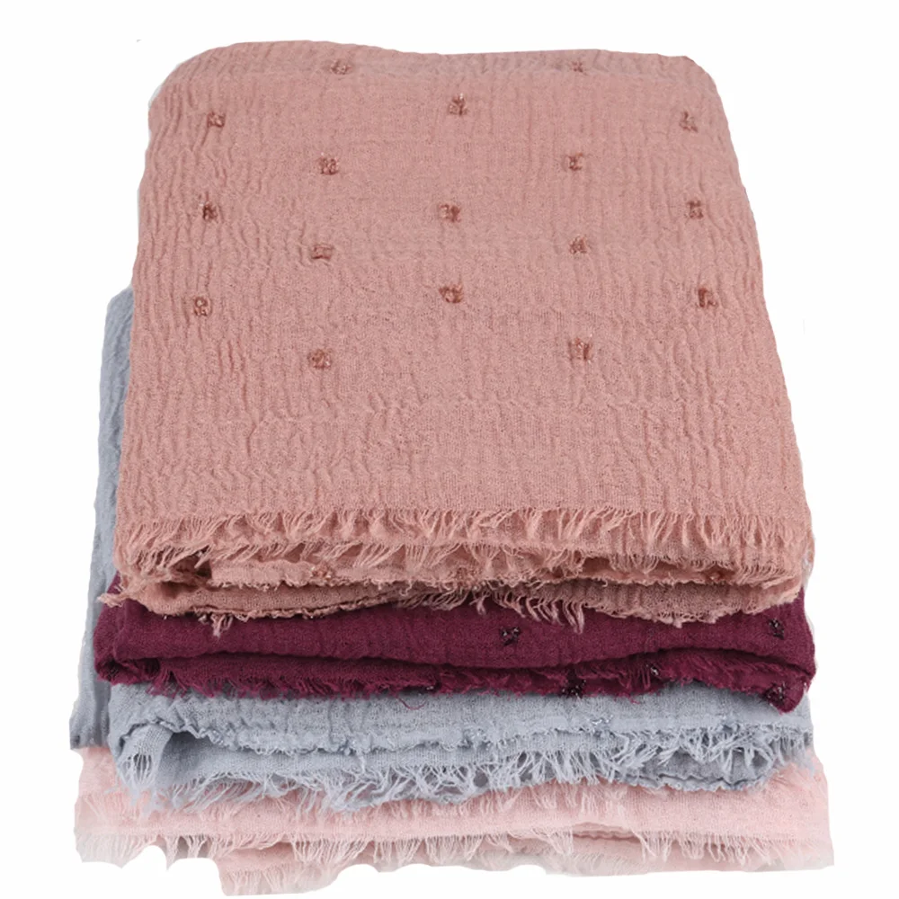 국경 간 단색 경량 통기성 면 및 린넨 스카프 주름진 공 스카프 말레이시아 중동 목도리