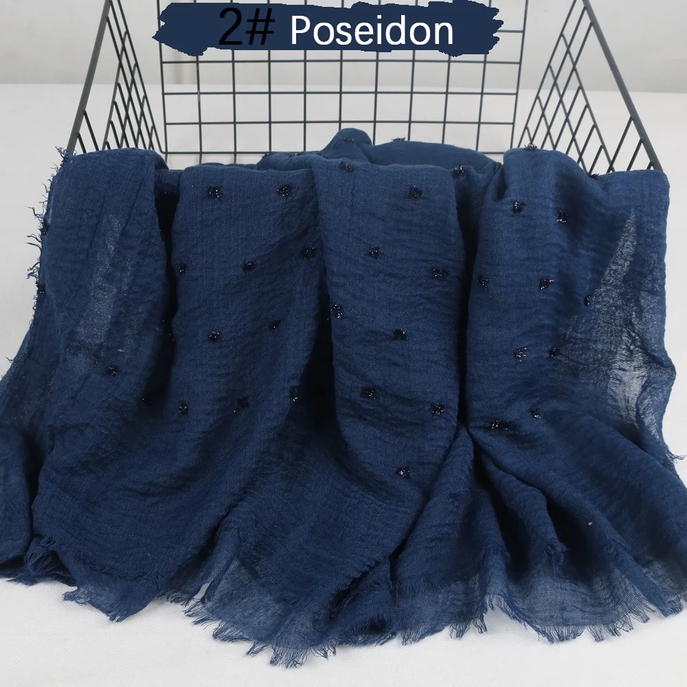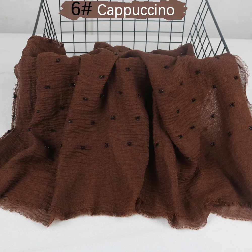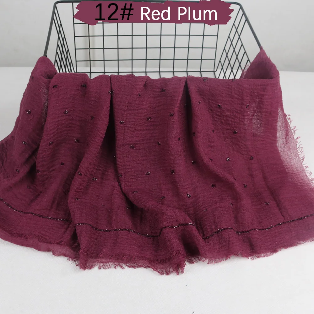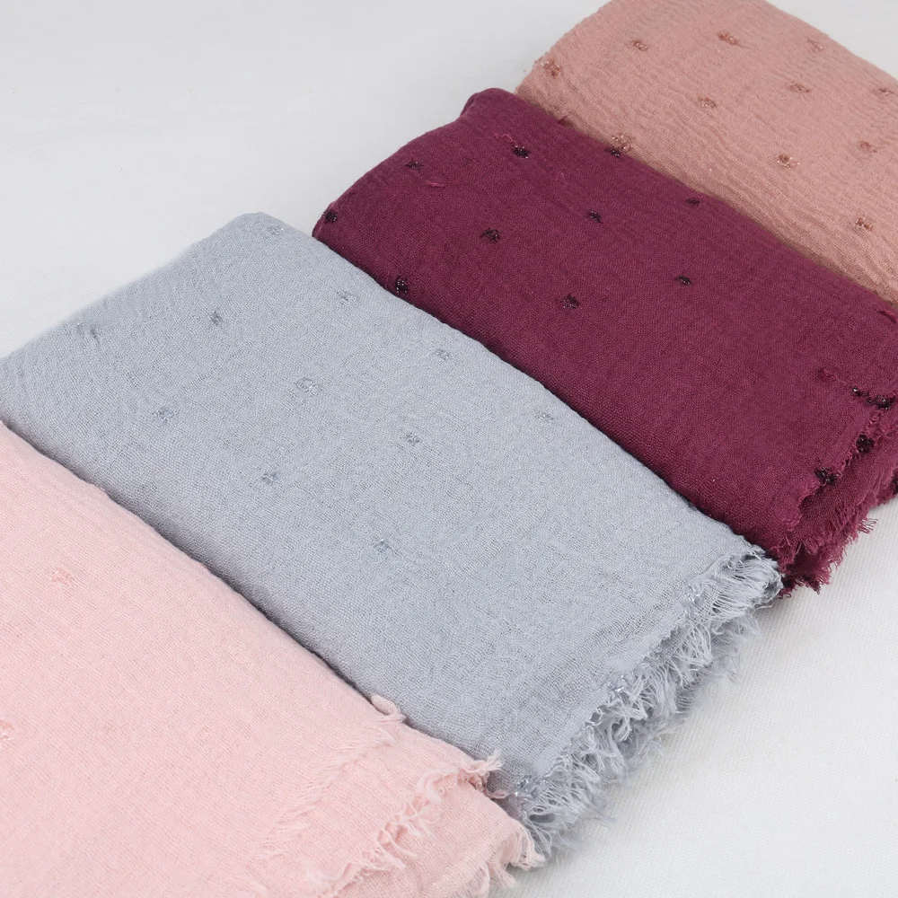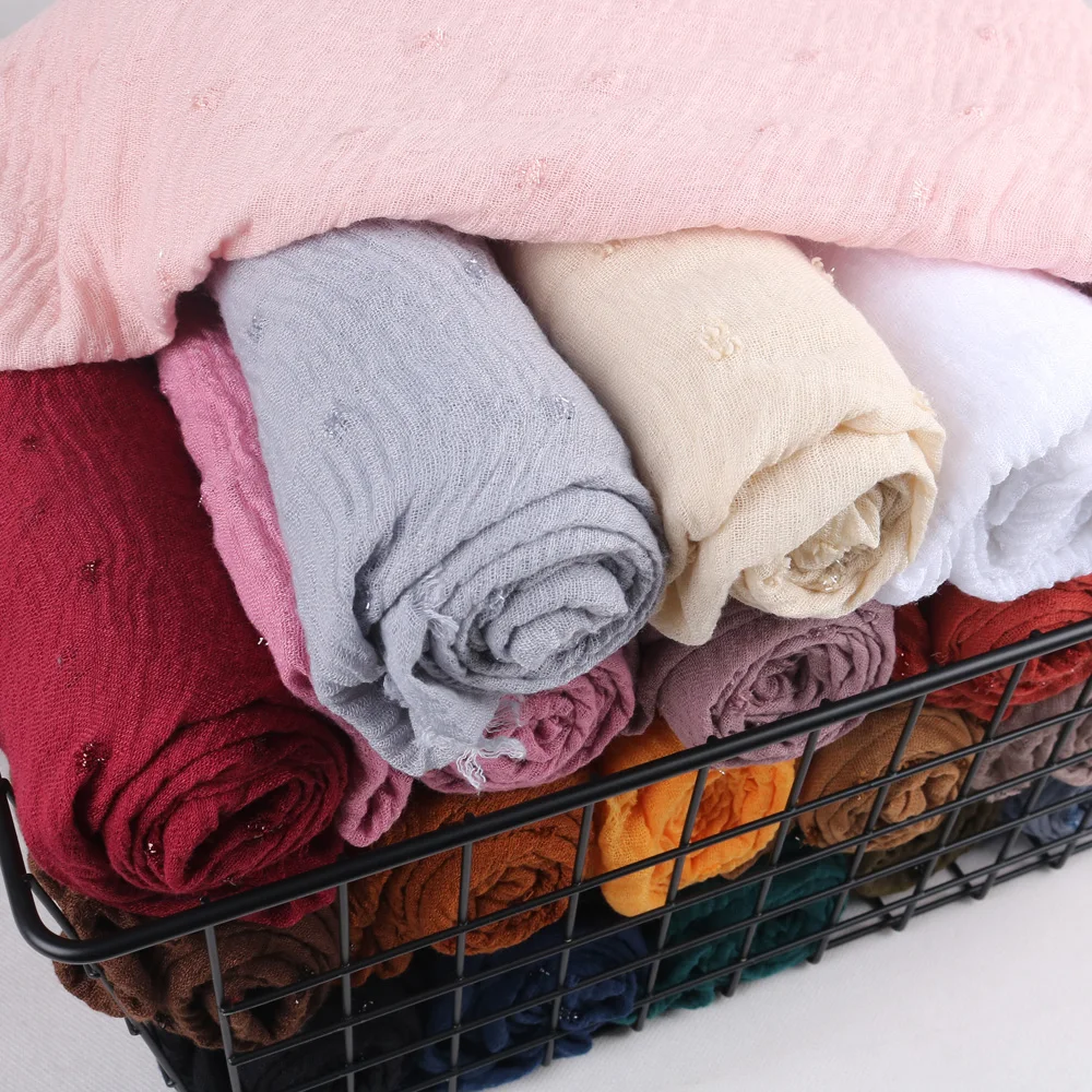 국경 간 단색 경량 통기성 면 및 린넨 스카프 주름진 공 스카프 말레이시아 중동 목도리스토어 가기