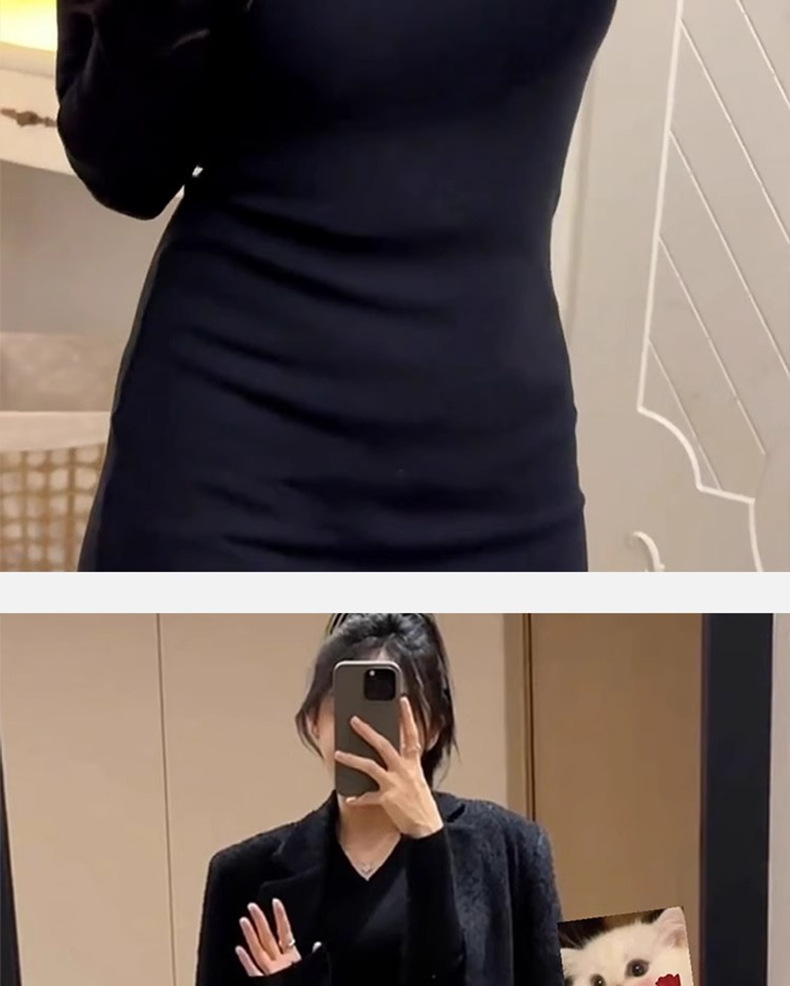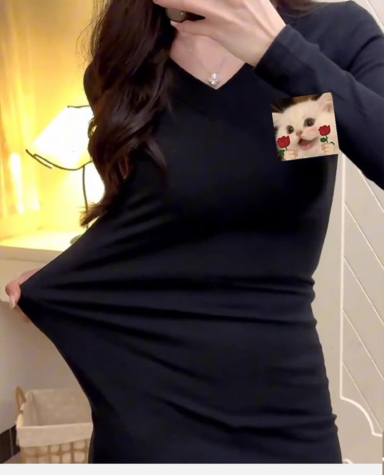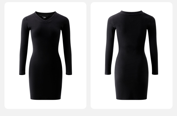 브이넥 가을 겨울 힙을 감싸는 순수하고 달콤하면서도 매혹적인 블랙 미니스커트 여성용 니트 플리스 원피스 도시 스타일스토어 가기