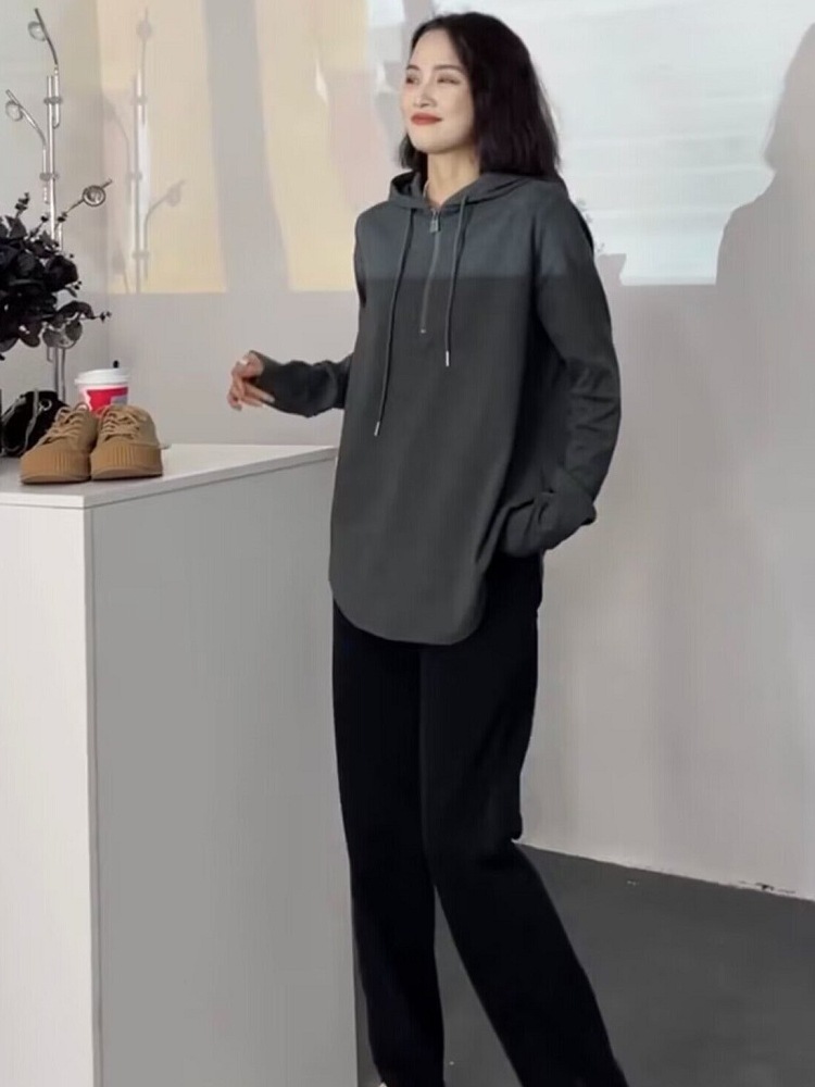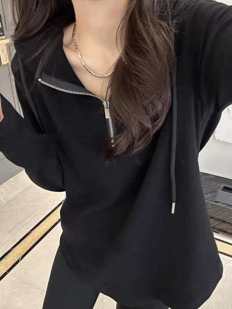 여성을위한 드 벨벳 후드 티셔츠 바닥 셔츠 봄 높은 감각 2023 새로운 한국 스타일 디자인 감각 스웨터 내부 탑스토어 가기