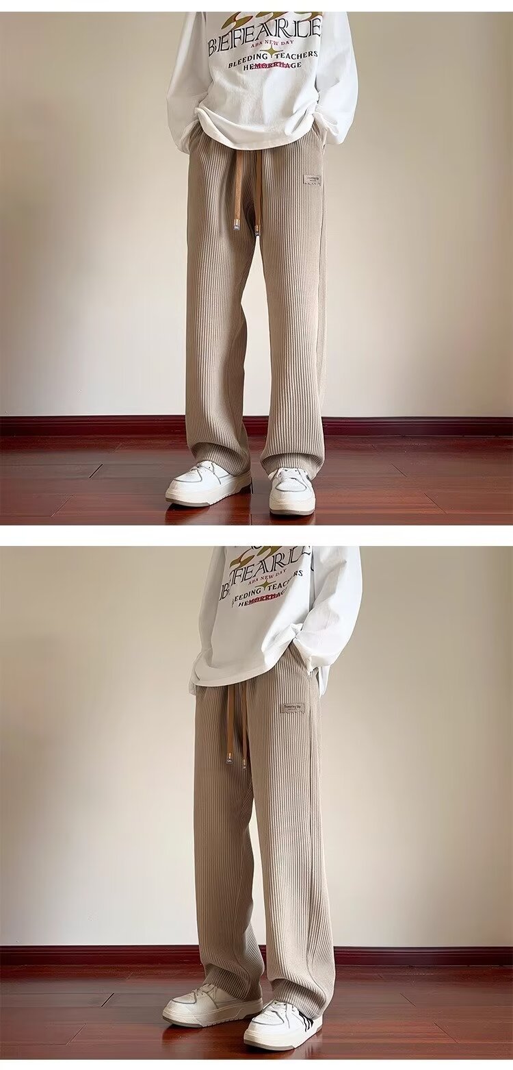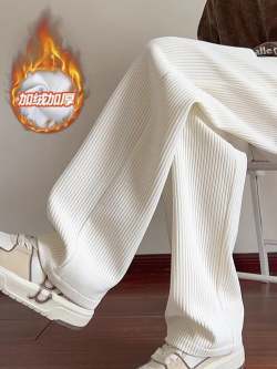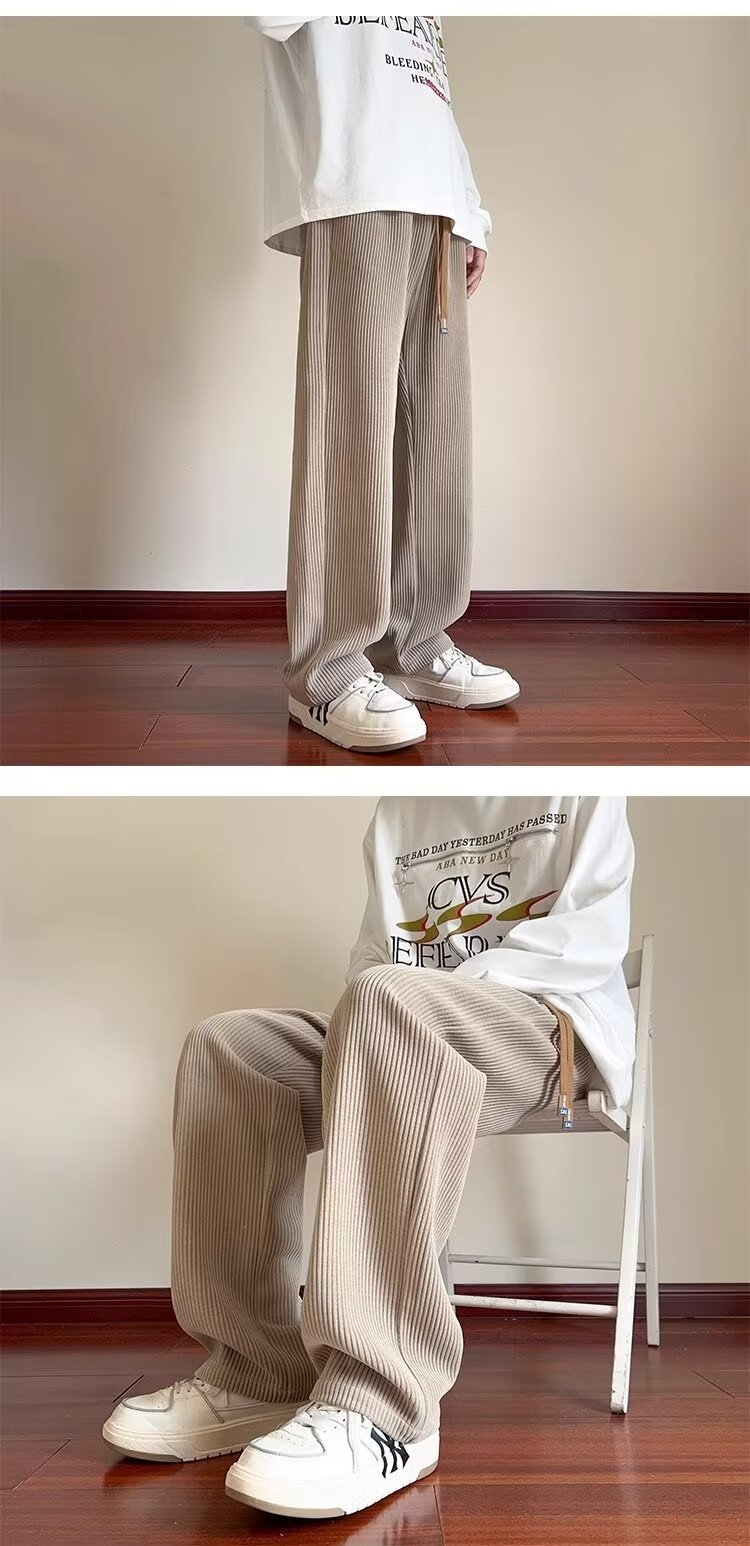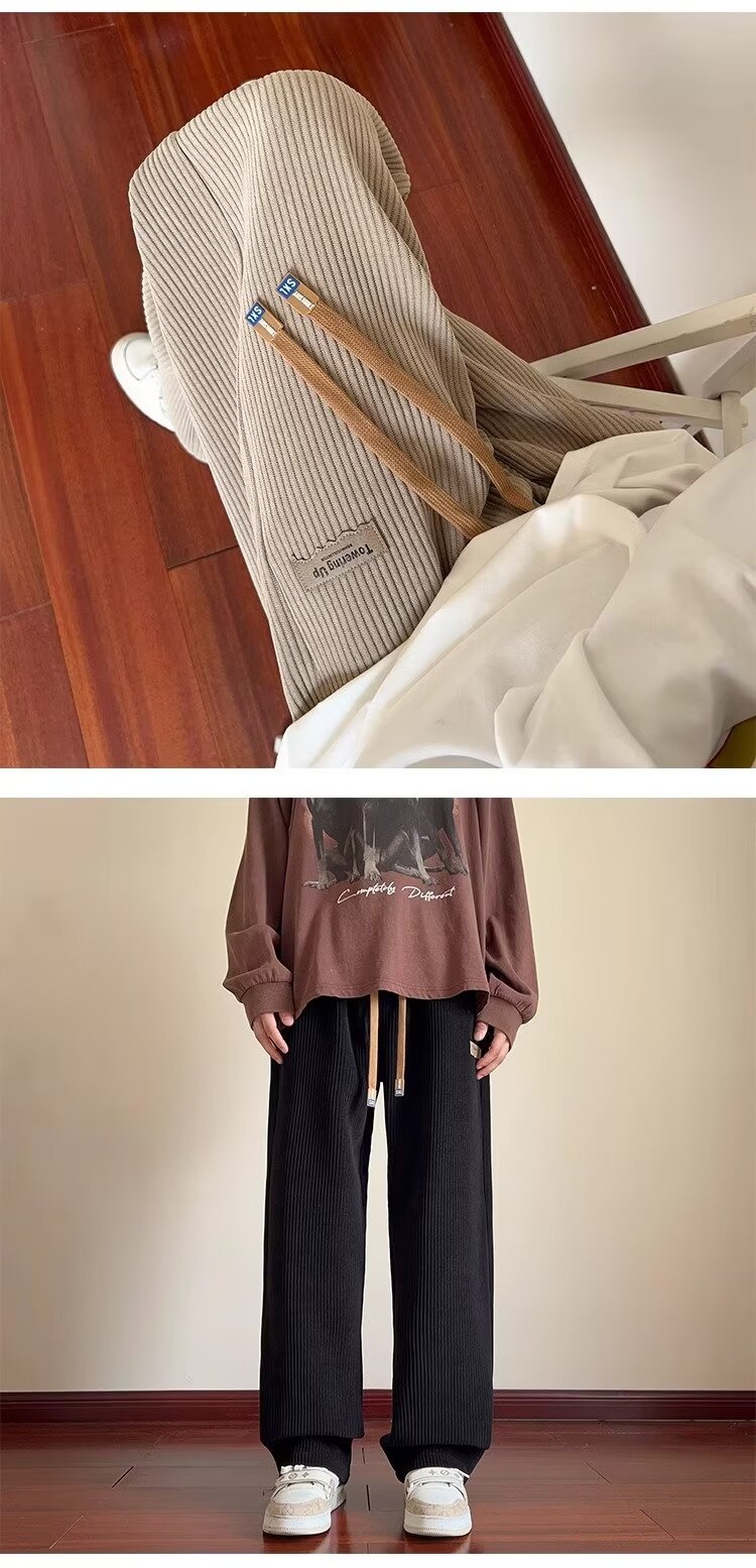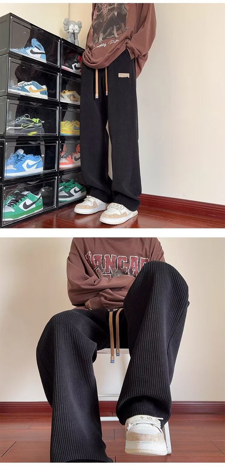 미국 코듀로이 바지 남성용 가을과 겨울 기모 느슨한 스트레이트 스웨트 팬츠 패션 브랜드 와이드 레그 남성용 바지 캐주얼 바지