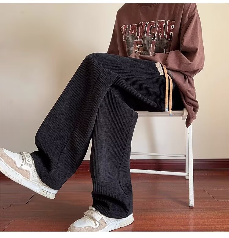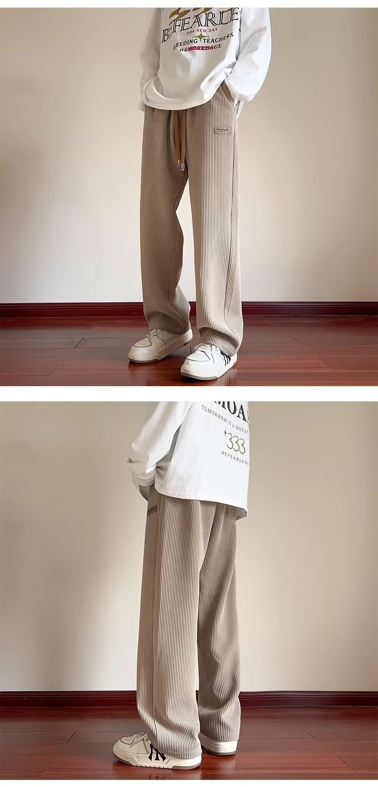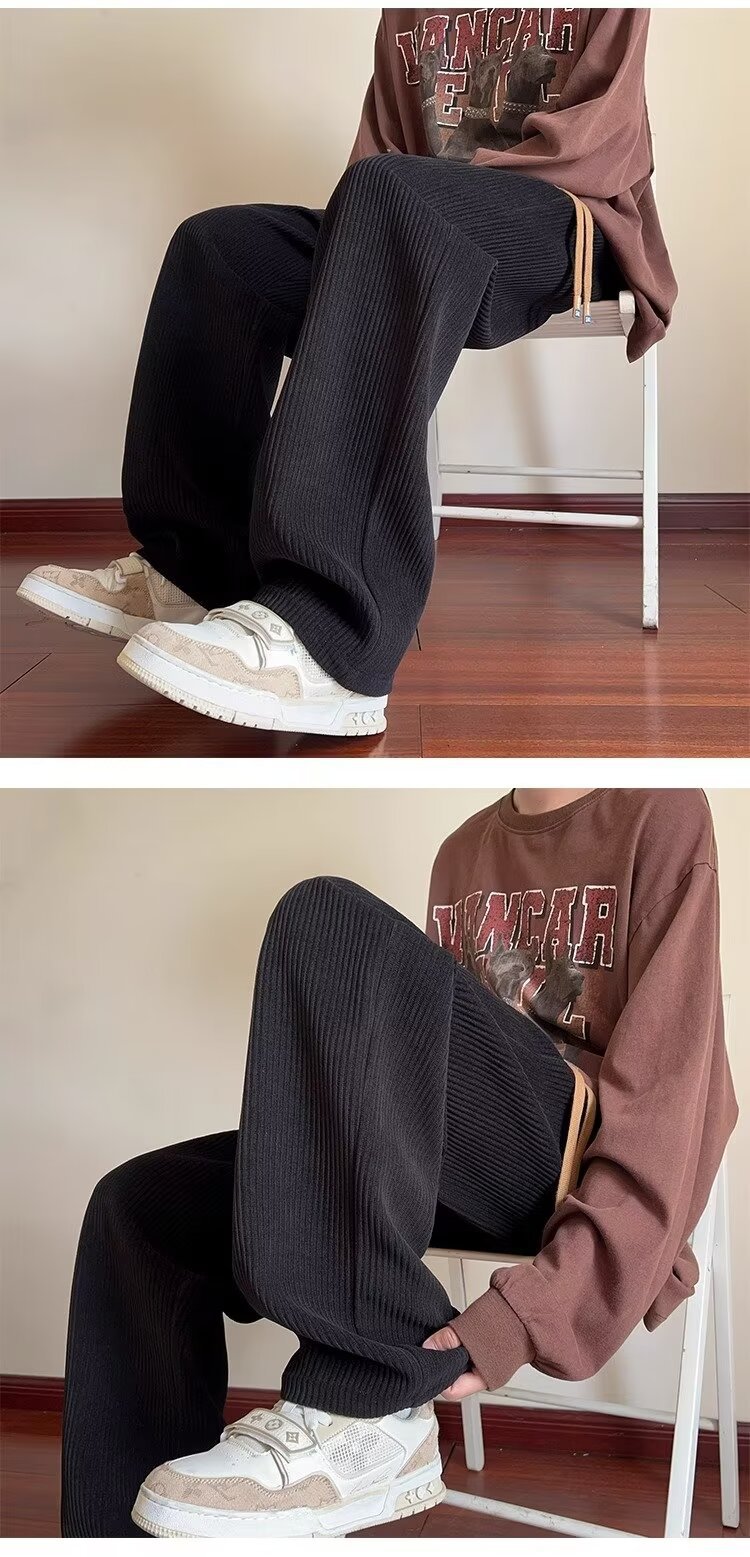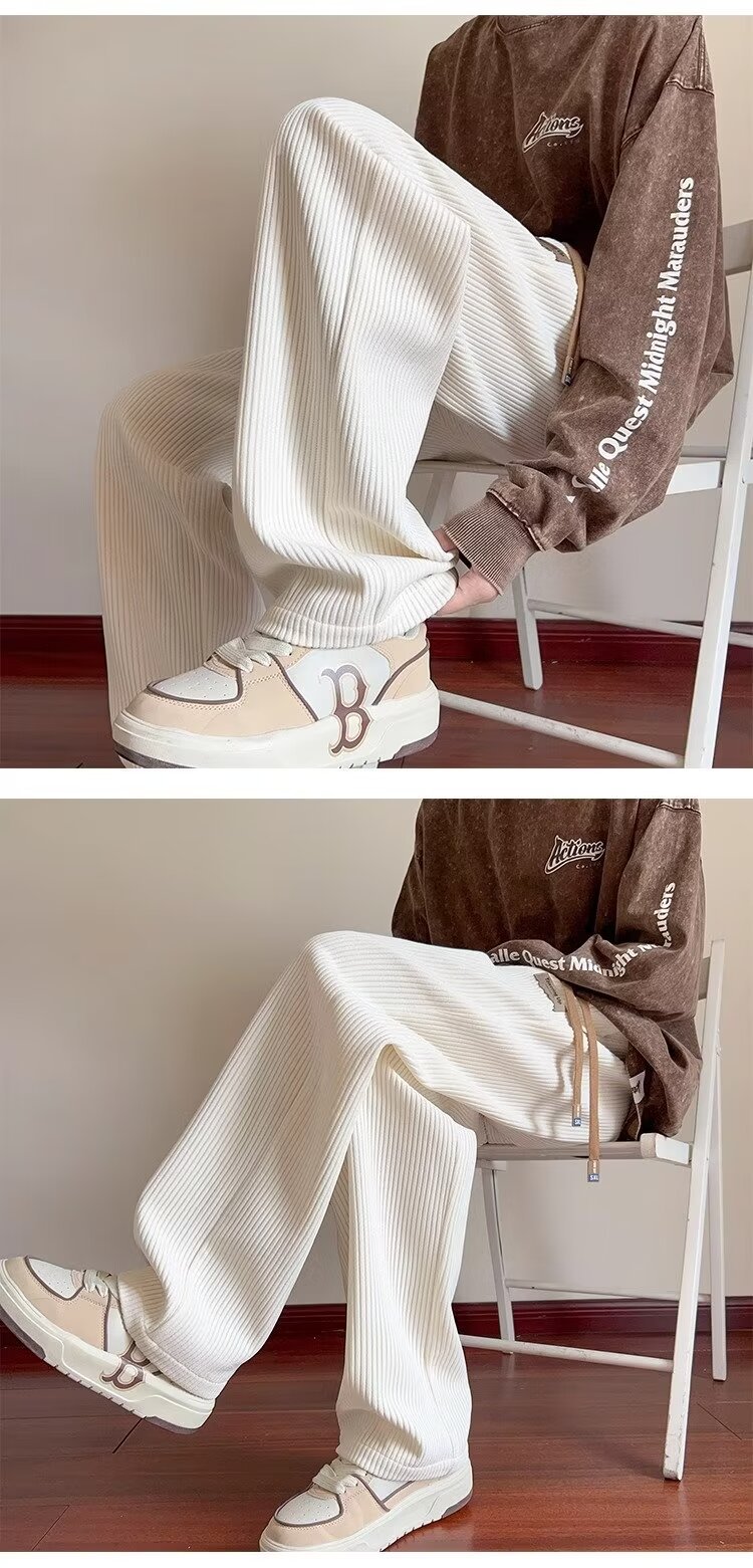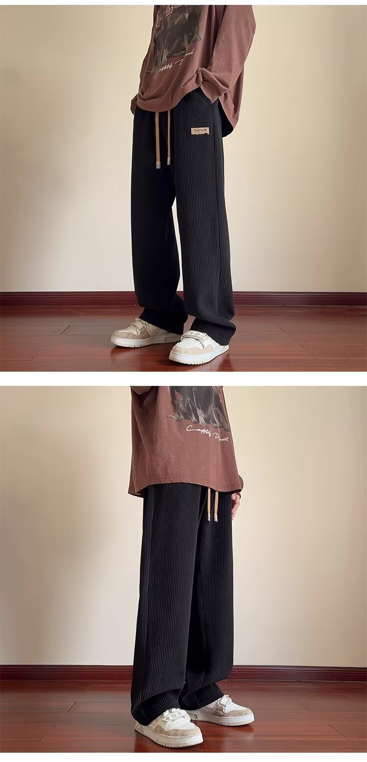 미국 코듀로이 바지 남성용 가을과 겨울 기모 느슨한 스트레이트 스웨트 팬츠 패션 브랜드 와이드 레그 남성용 바지 캐주얼 바지