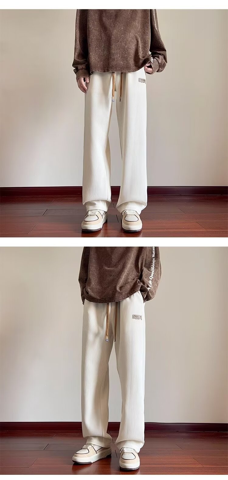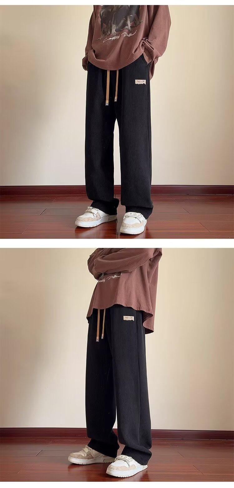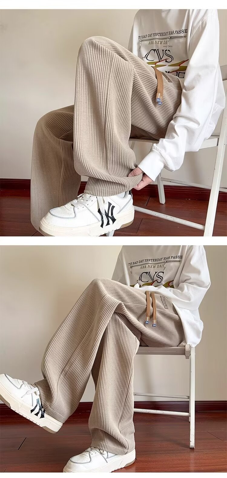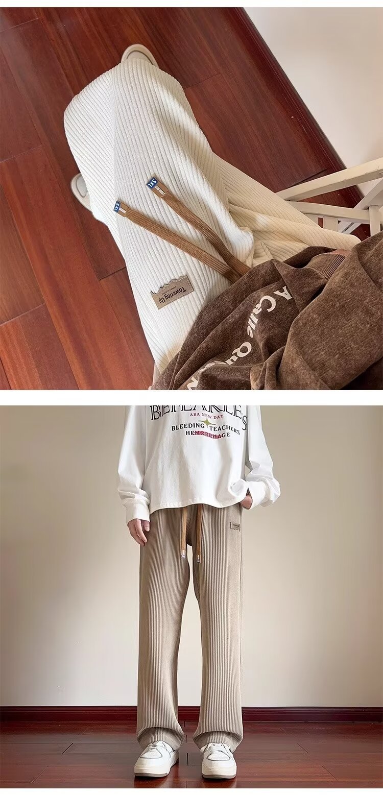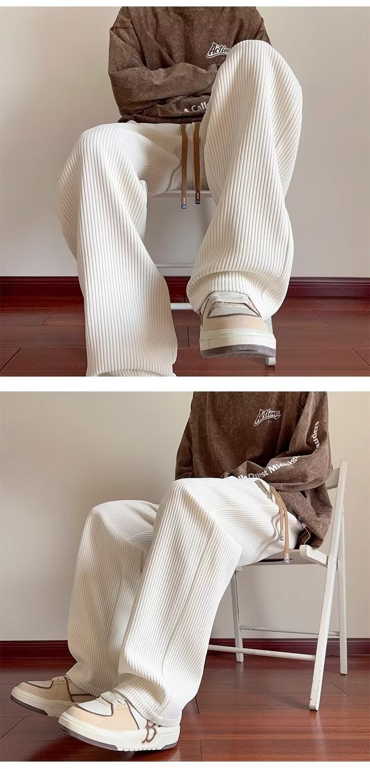 미국 코듀로이 바지 남성용 가을과 겨울 기모 느슨한 스트레이트 스웨트 팬츠 패션 브랜드 와이드 레그 남성용 바지 캐주얼 바지