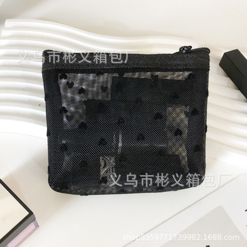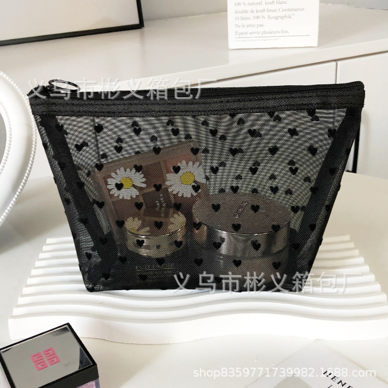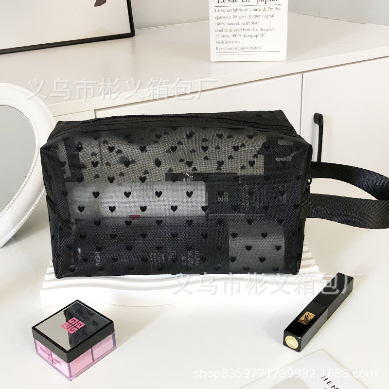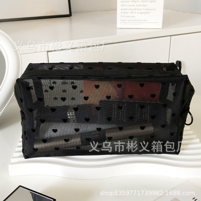 블랙 인스 스타일 벨벳 하트 메쉬 화장품 가방 수납용 휴대용 파우치 여성용 화장품 가방 인스 스타일