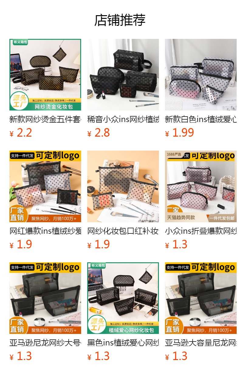블랙 인스 스타일 벨벳 하트 메쉬 화장품 가방 수납용 휴대용 파우치 여성용 화장품 가방 인스 스타일스토어 가기