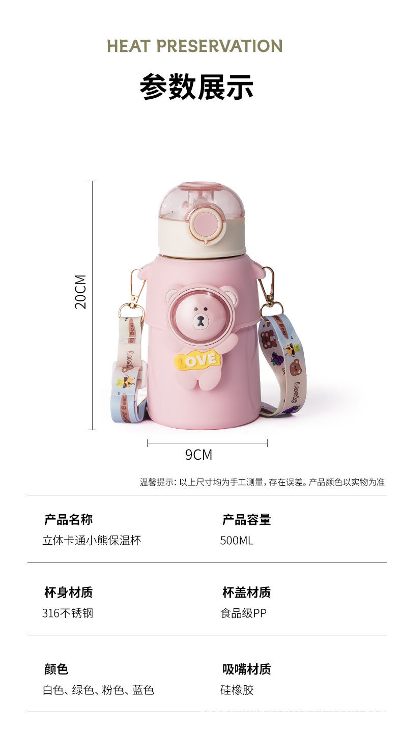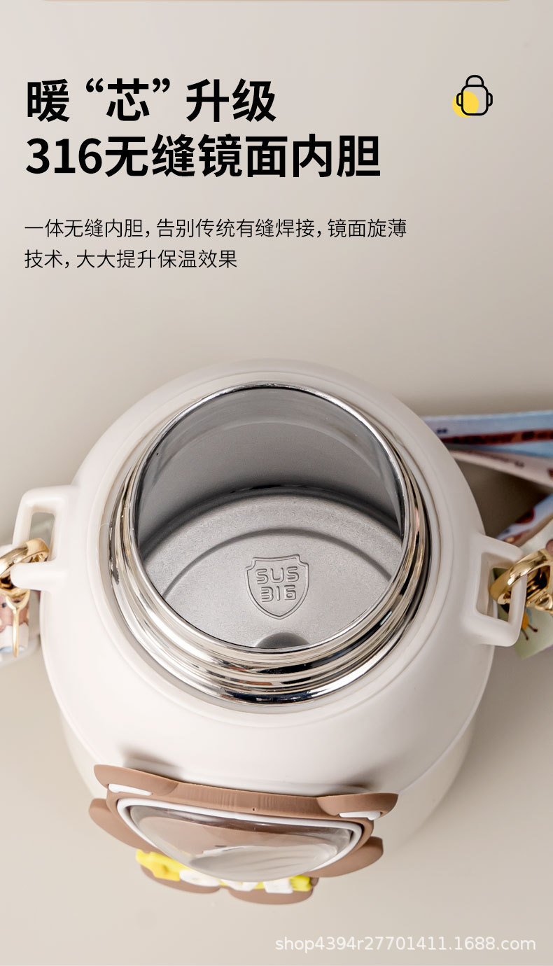 식품 등급 어린이 보온병 컵 316 스테인레스 스틸 밀짚 컵 휴대용 고가치 소녀 학생 귀여운 컵