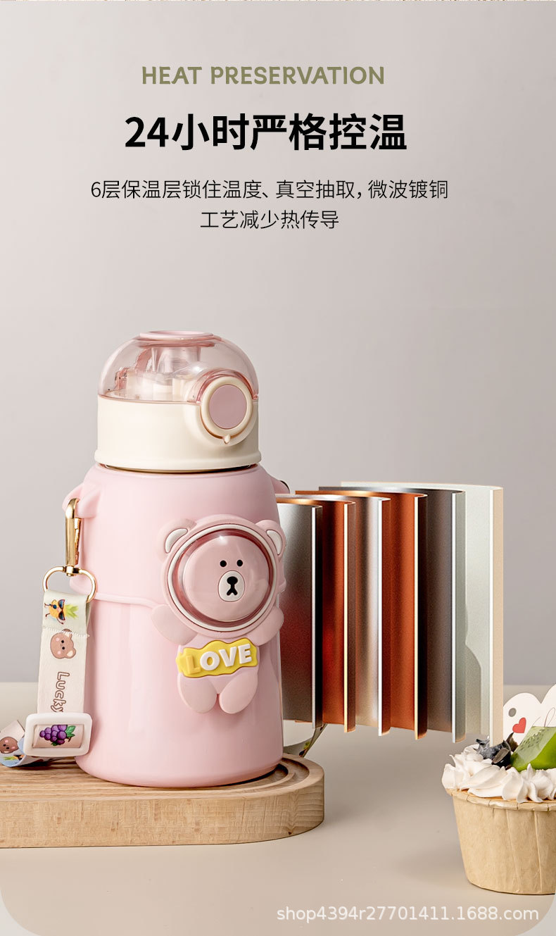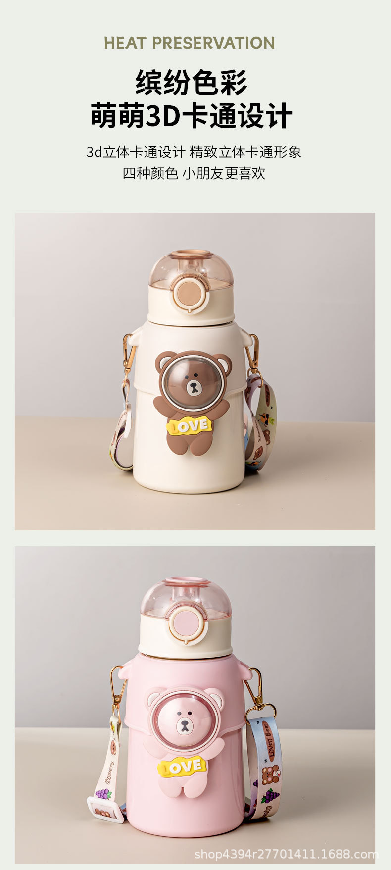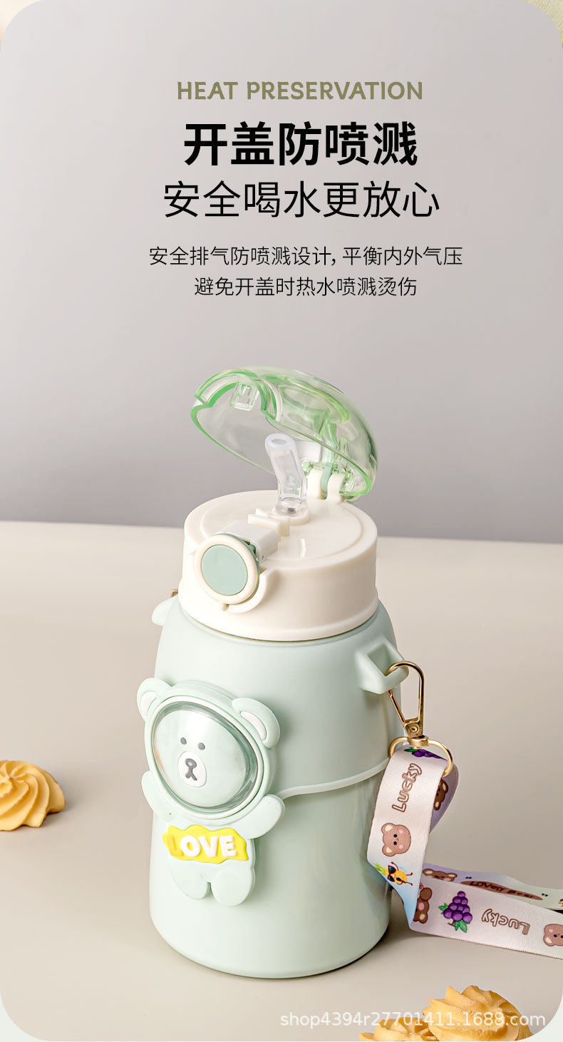 식품 등급 어린이 보온병 컵 316 스테인레스 스틸 밀짚 컵 휴대용 고가치 소녀 학생 귀여운 컵스토어 가기