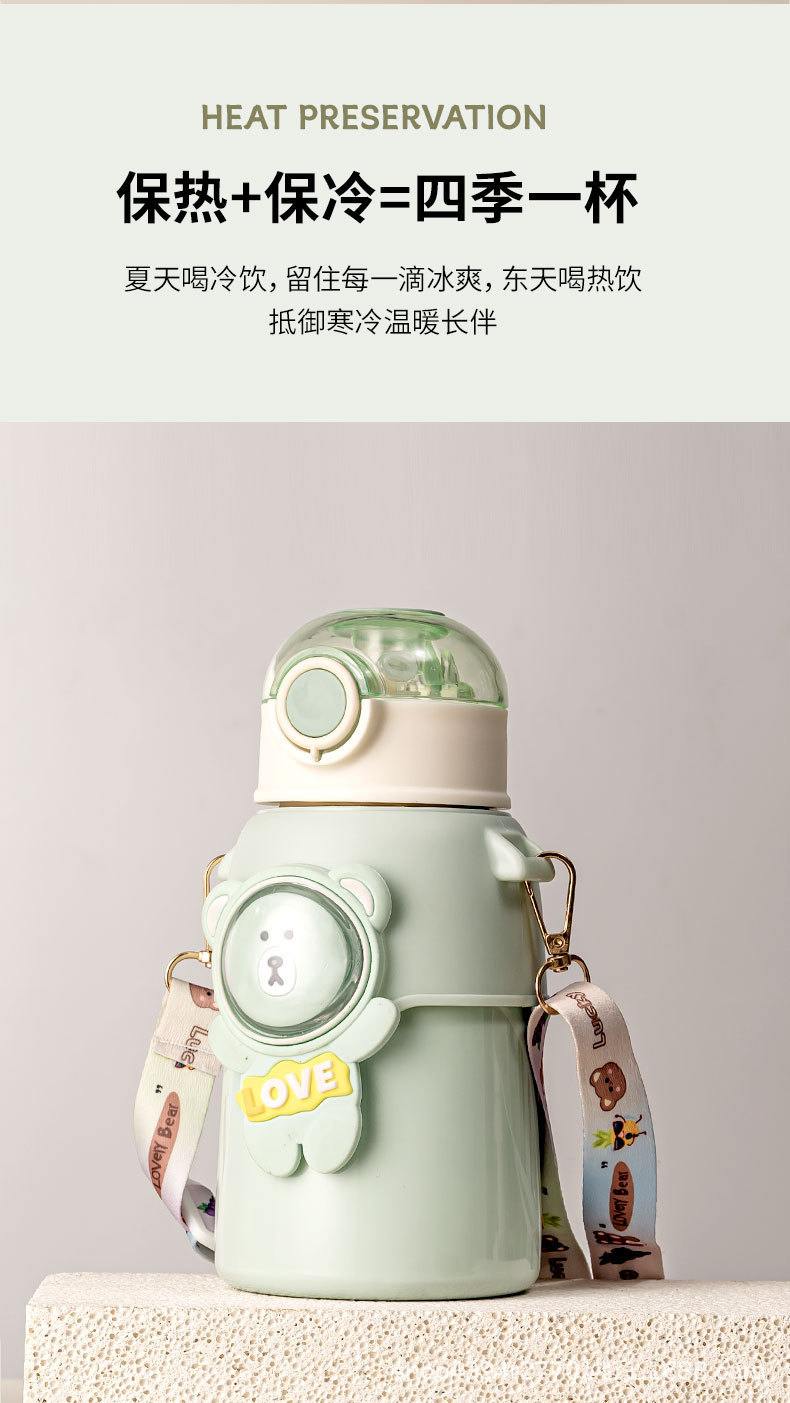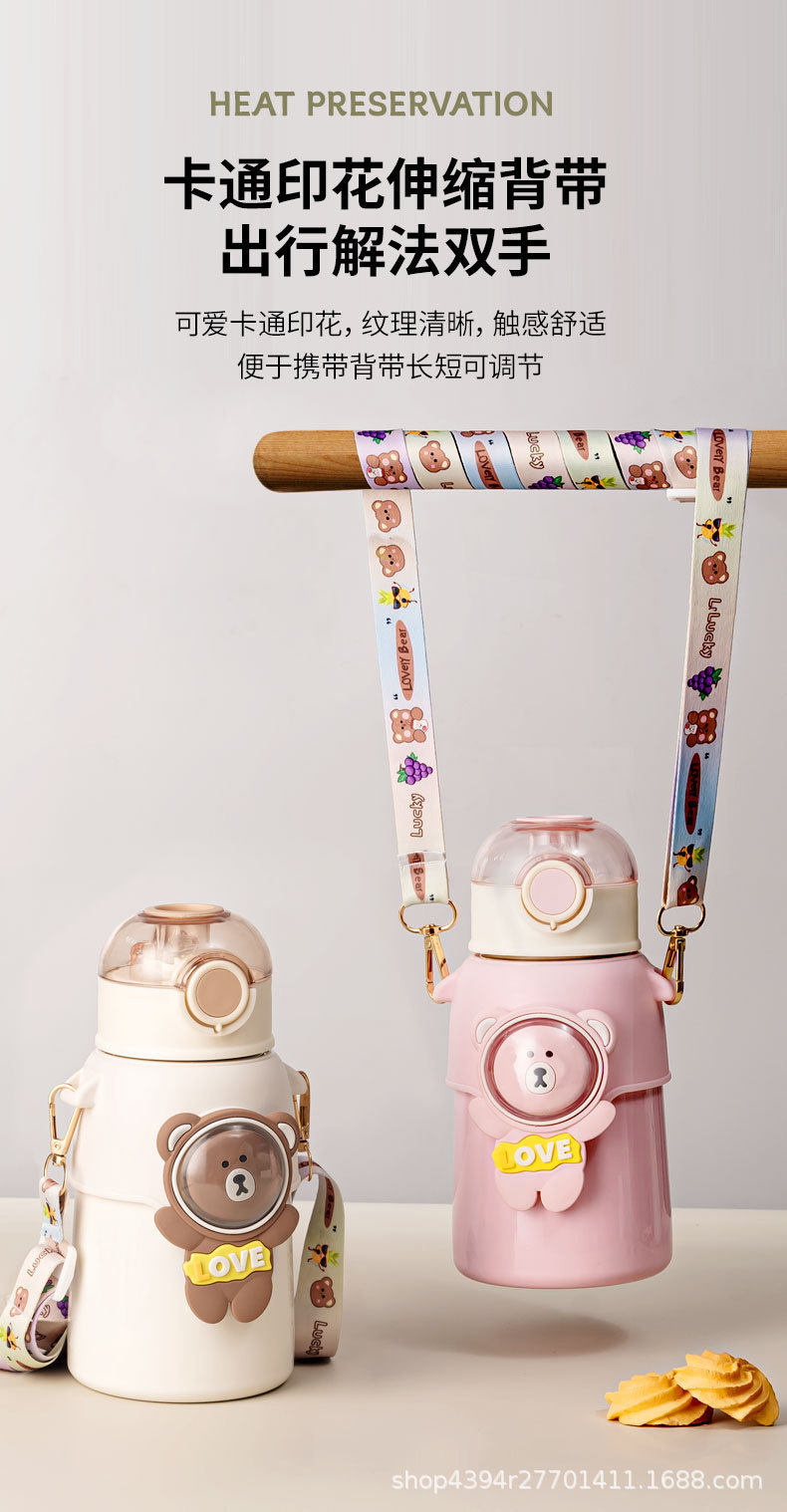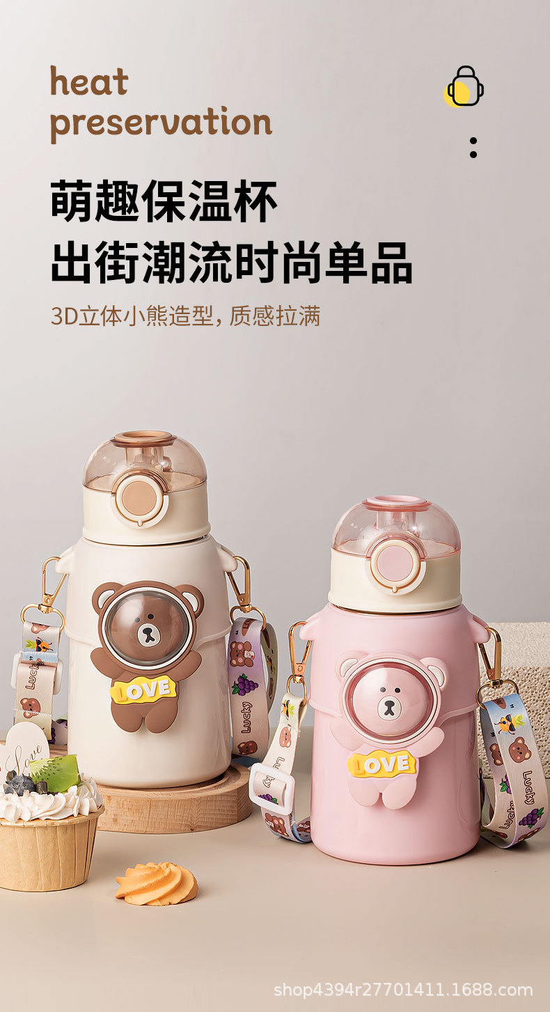 식품 등급 어린이 보온병 컵 316 스테인레스 스틸 밀짚 컵 휴대용 고가치 소녀 학생 귀여운 컵스토어 가기