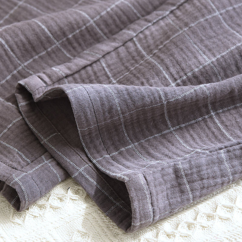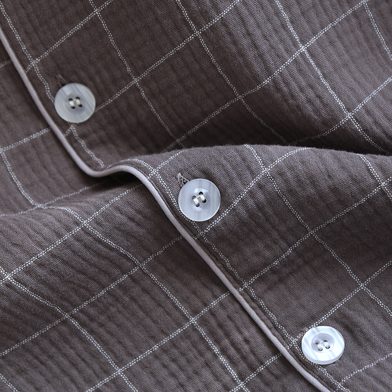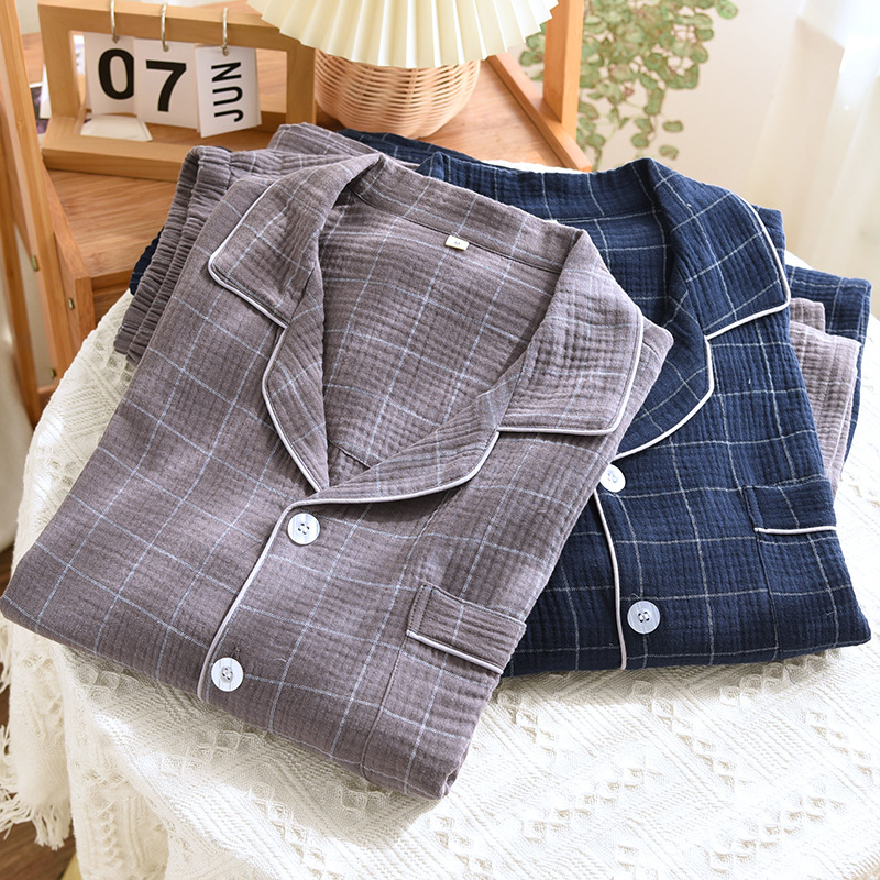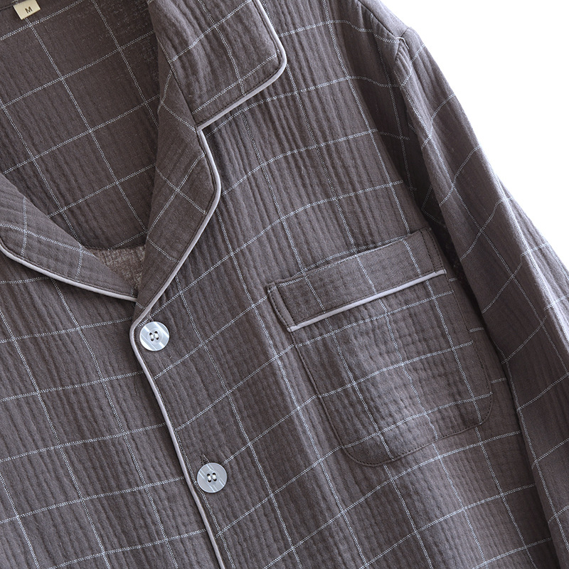 남성용 더블 레이어 크레이프 코튼 체크 무늬 긴팔 카디건 플러스 사이즈 홈웨어 세트 긴팔 바지 느슨한스토어 가기