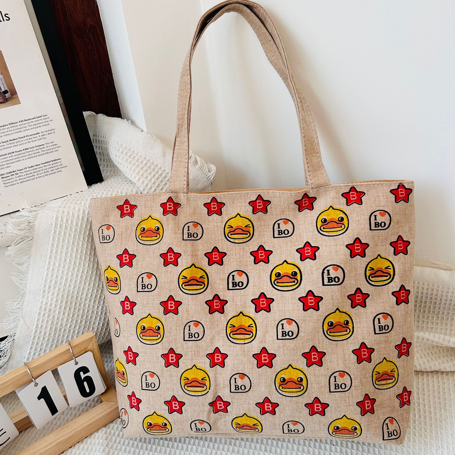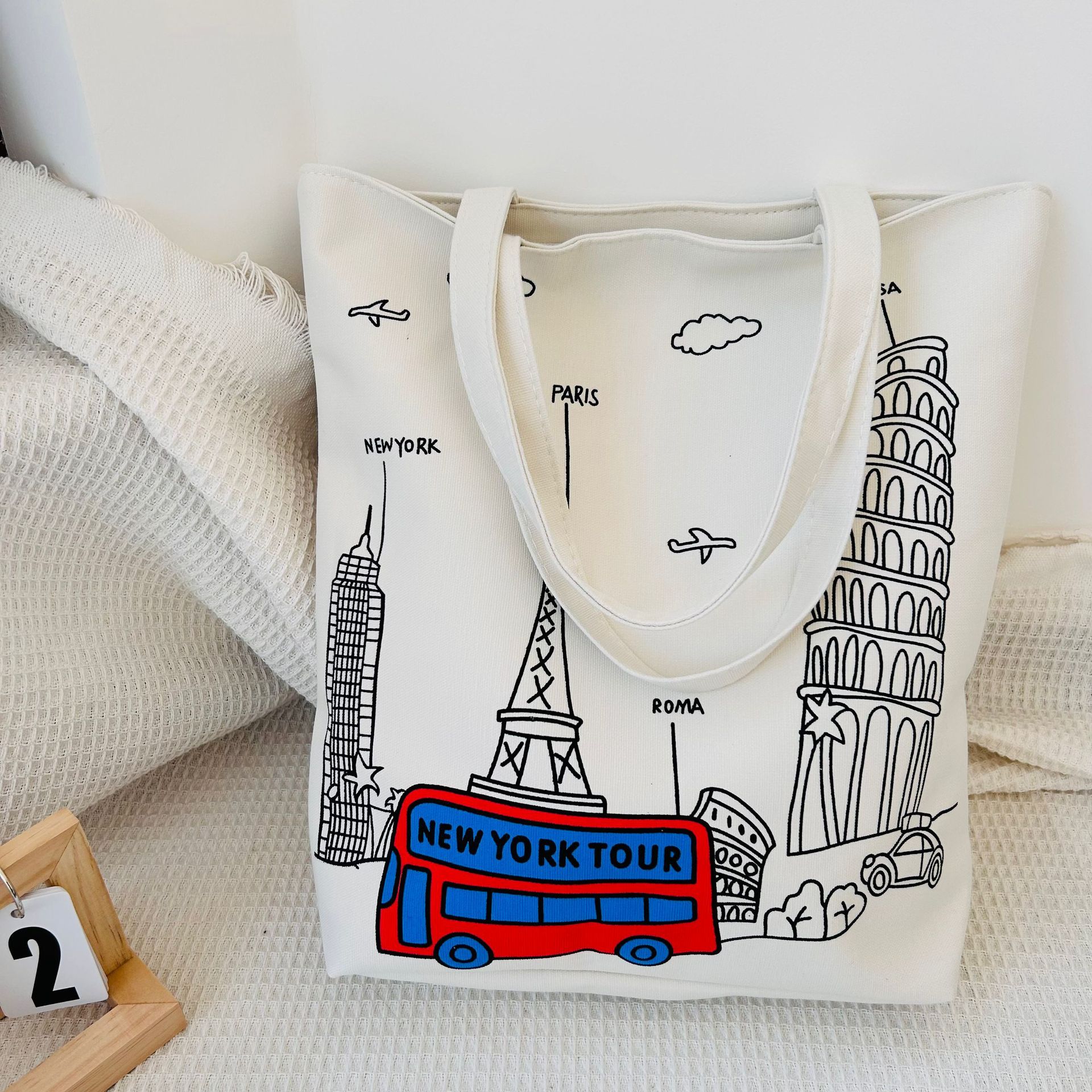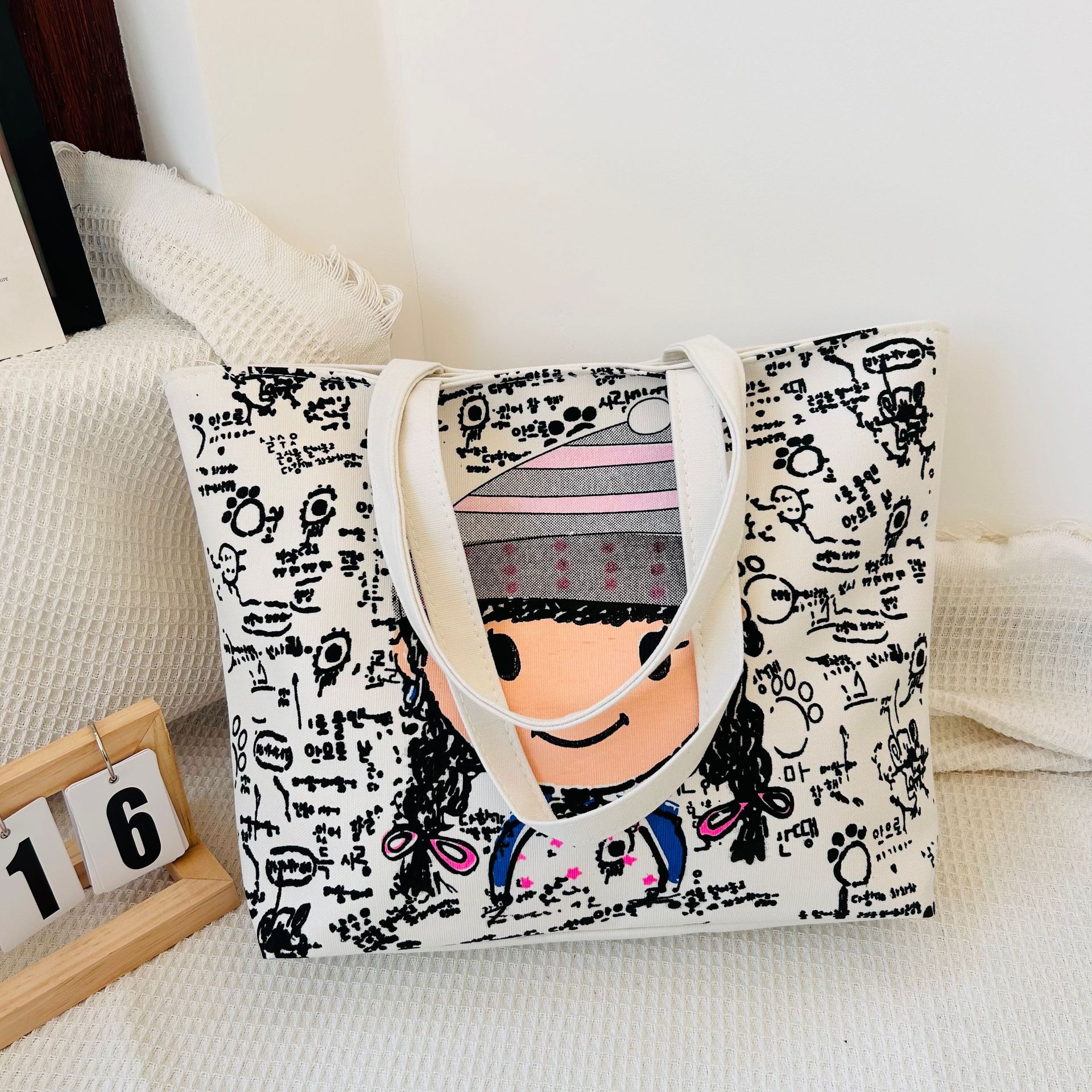 새로운 도착 인쇄 어깨 핸드 헬드 캔버스 여성용 가방 대용량 한국식 토트 대형 가방 예술적 인쇄 학생 도서 가방스토어 가기