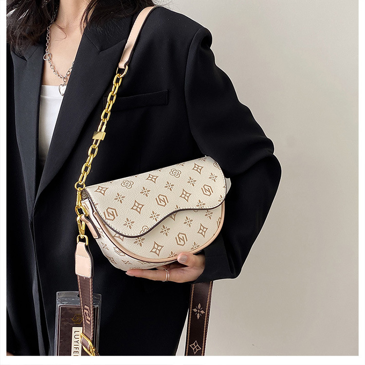 2025 새로운 틈새 하이 엔드 질감 가방 여성 패션 인쇄 안장 가방 다목적 겨드랑이 가방 어깨 크로스 바디 백