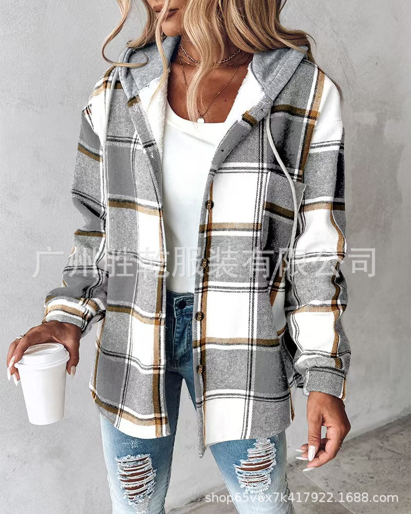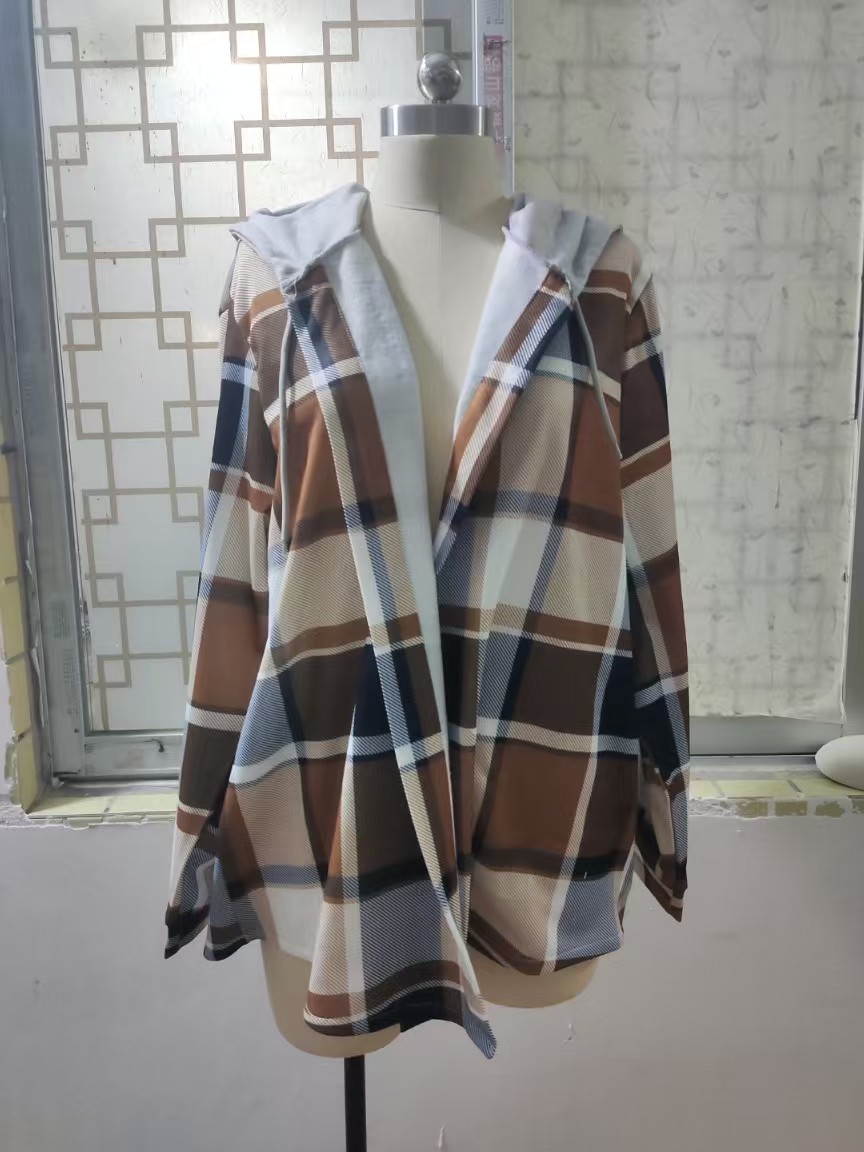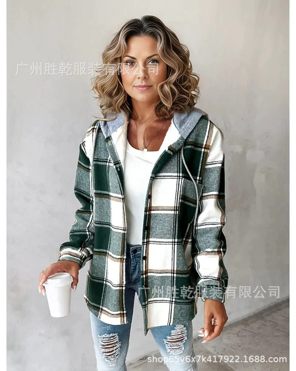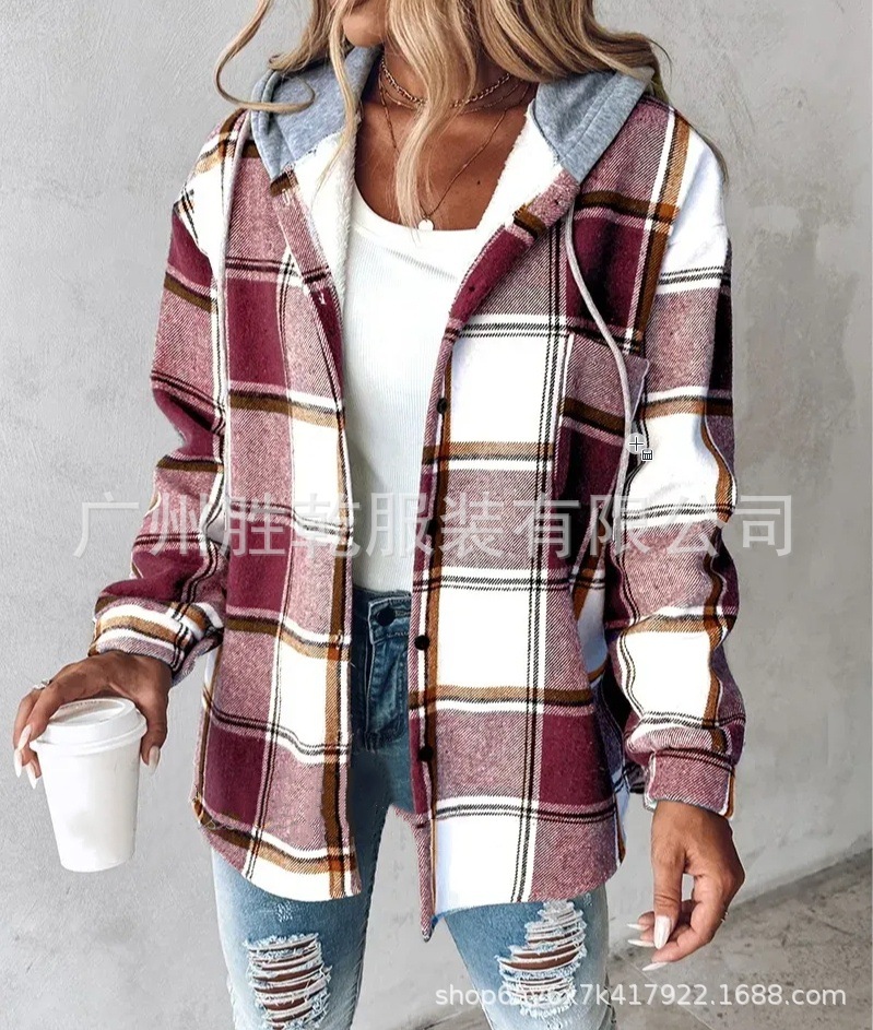 2025 유럽과 미국 캐주얼 AliExpress Amazon 인기 여성 대형 격자 무늬 여성 코트 격자 무늬 가을 겨울 새로운 스타일스토어 가기