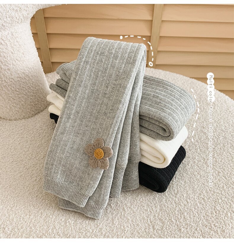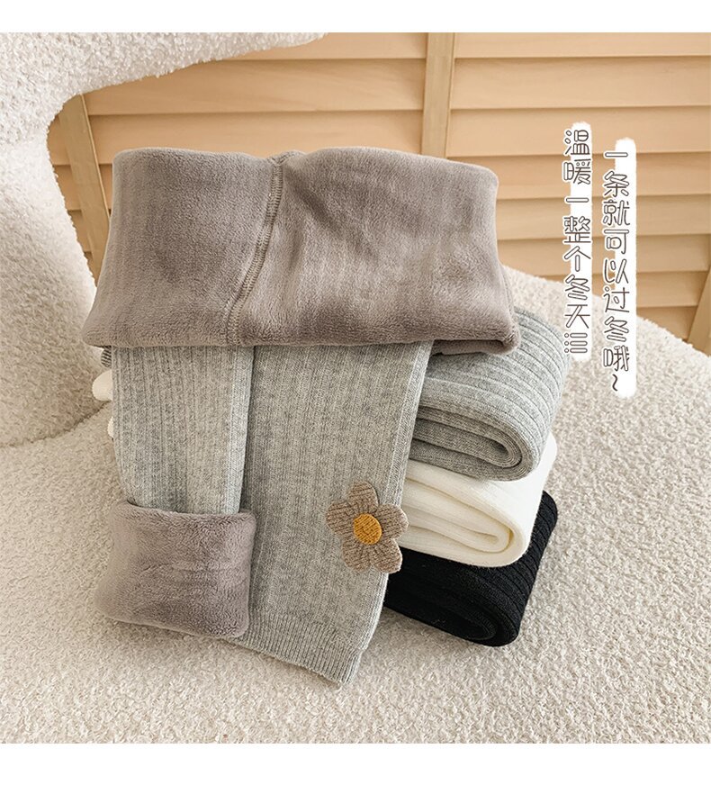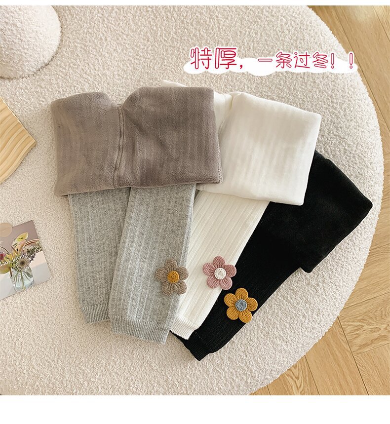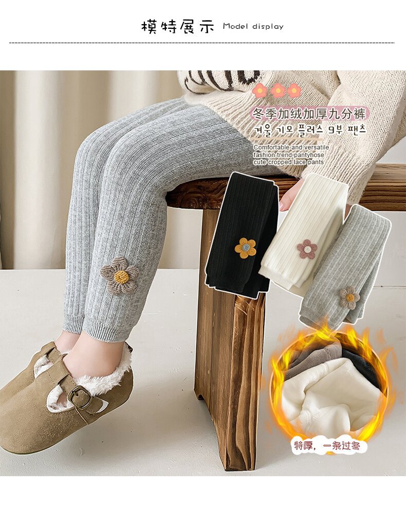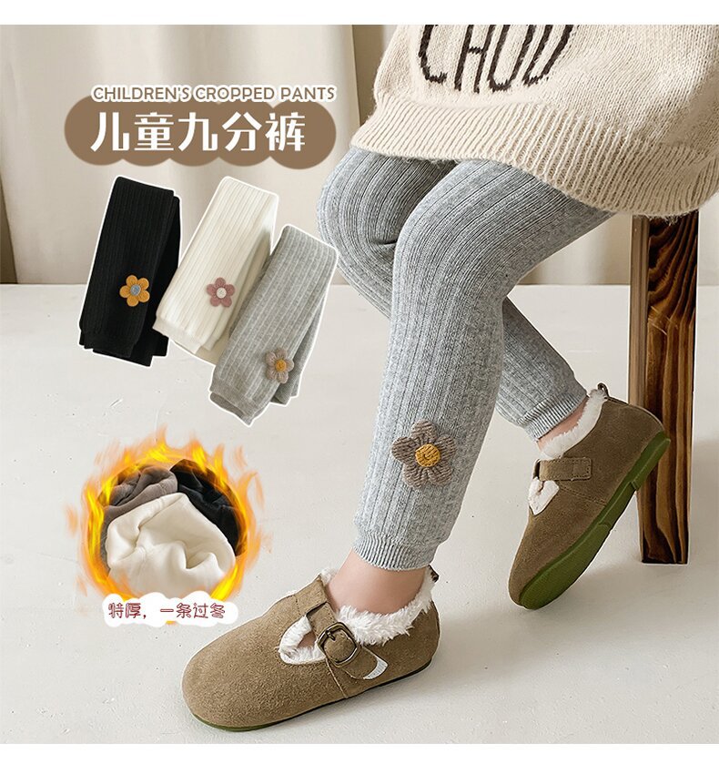 가을과 겨울 소녀 레깅스 기모 두꺼운 해바라기 아기 벨벳 베이비 크롭 바지 외부 바지 도매