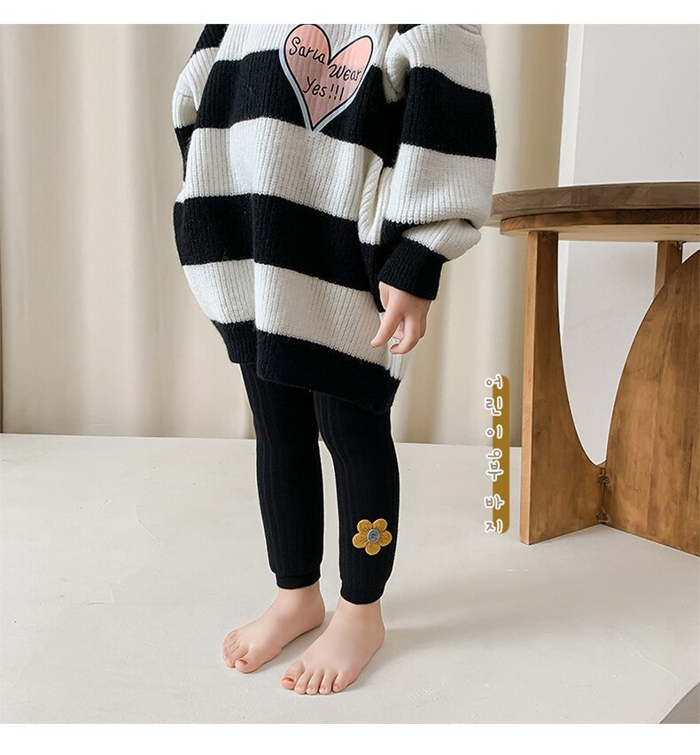 가을과 겨울 소녀 레깅스 기모 두꺼운 해바라기 아기 벨벳 베이비 크롭 바지 외부 바지 도매스토어 가기