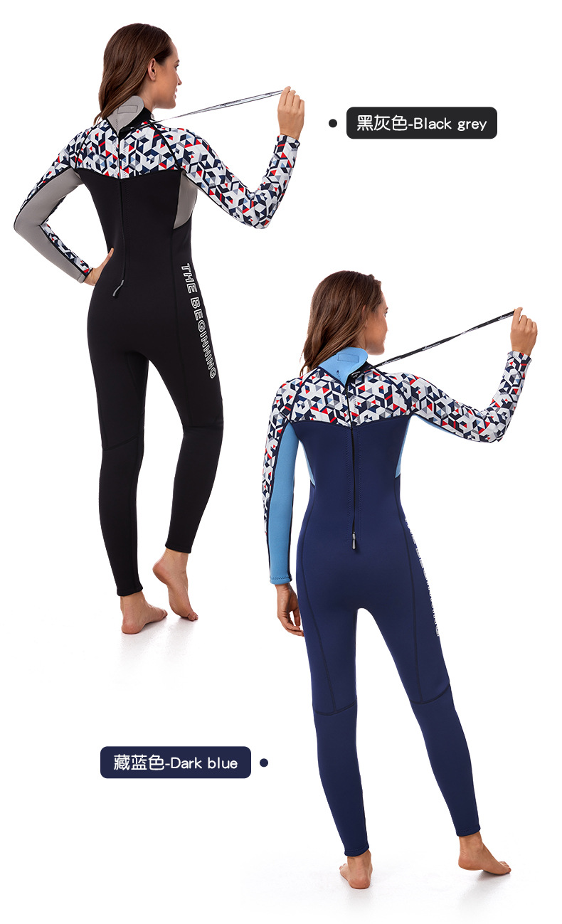 국경 간 새로운 3MM 따뜻한 수영복 여성용 원피스 긴팔 바지 태양 보호 긴 장비 서핑 다이빙 세트스토어 가기