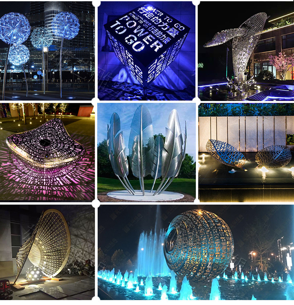 야외 스테인리스 조각 맞춤형 원형 동물 발광 조경 정원 공원 광장 거울 장식 입체