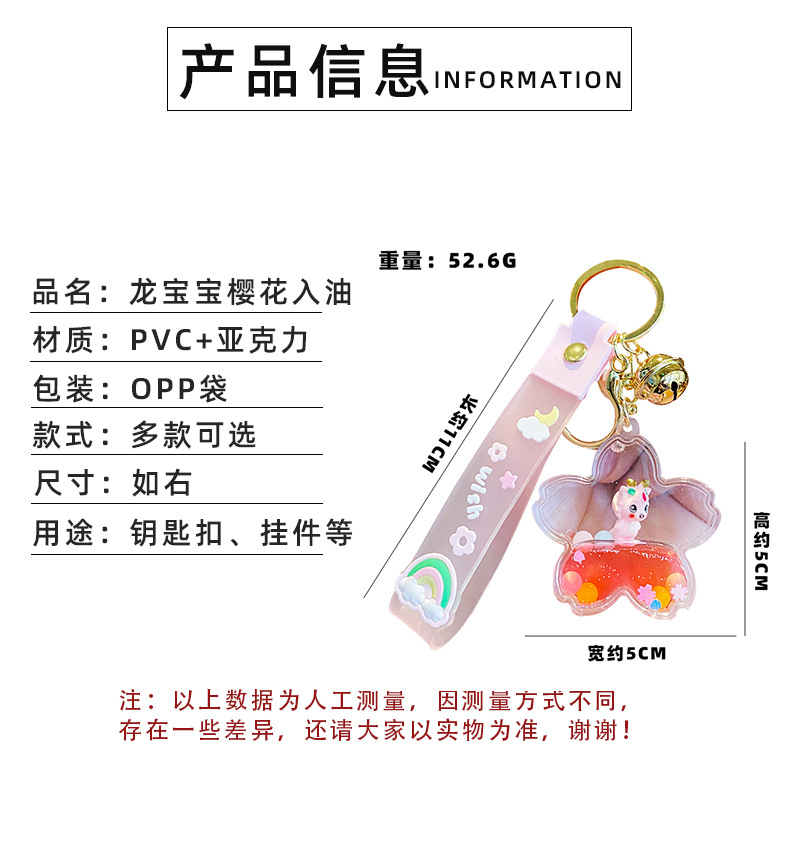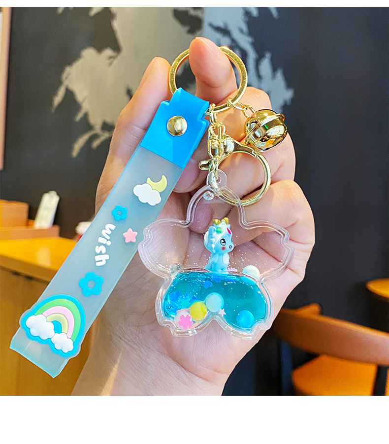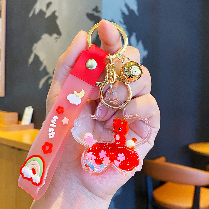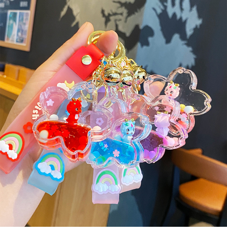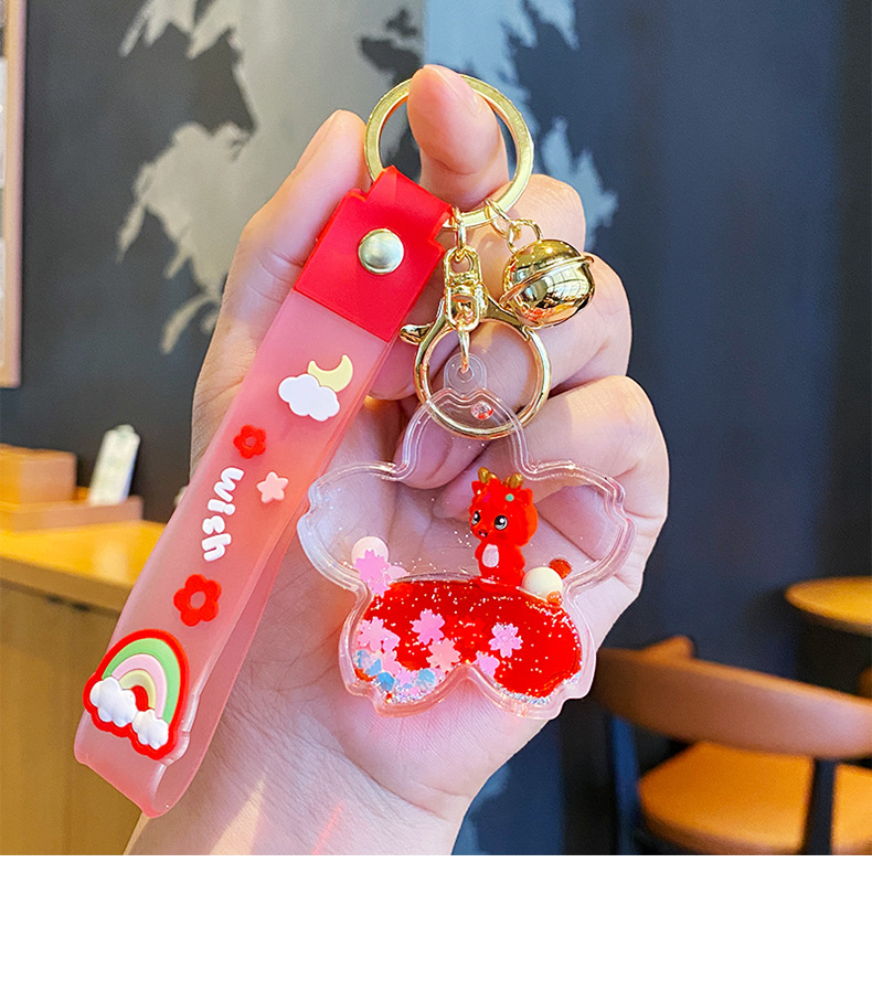 새로운 기름 벚꽃 키 체인 여성 귀여운 용 아기 떠 다니는 병 액체 퀵 샌드 펜던트 어린이 책가방 장식품스토어 가기