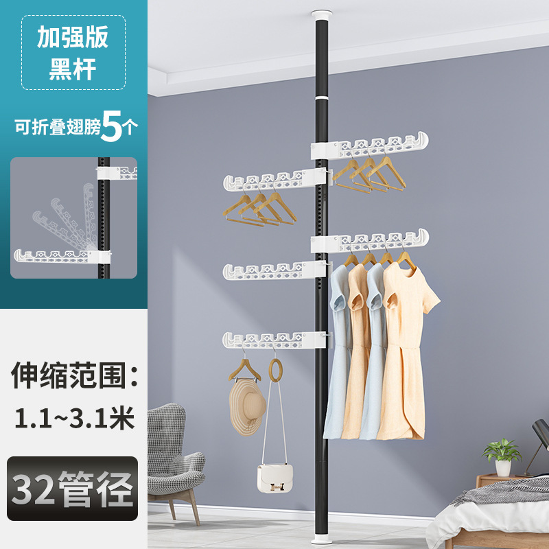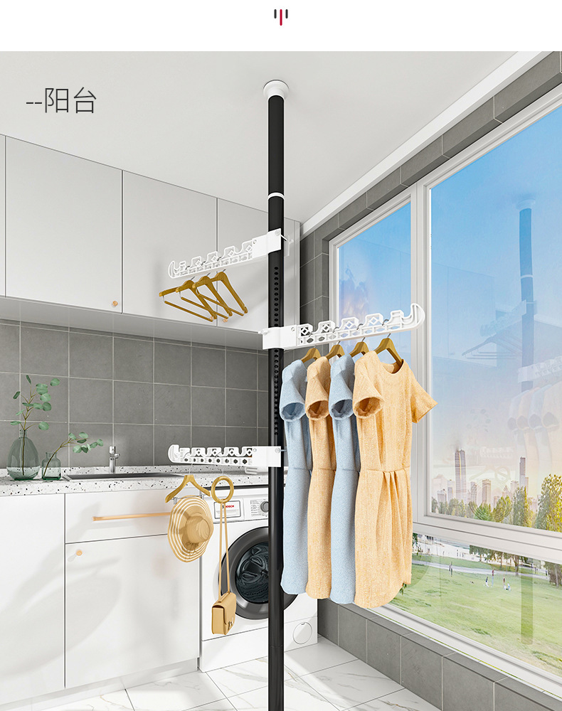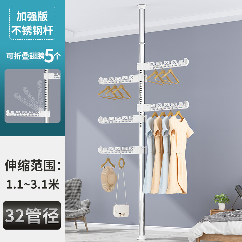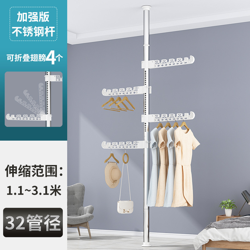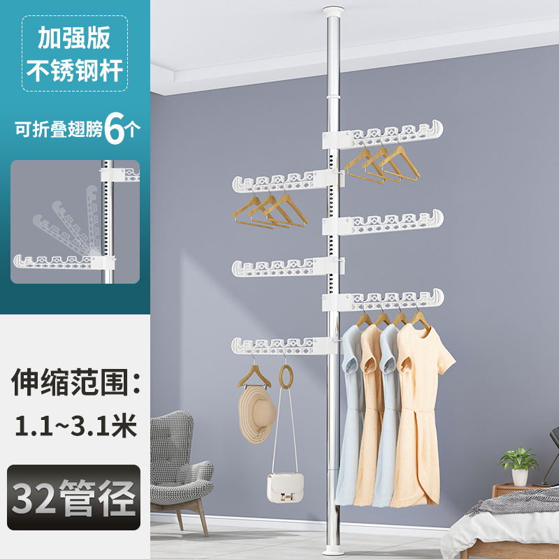 탑 플로어 옷 옷걸이 보관 랙 매달려있는 펀치 프리 텔레스코픽 로드 발코니 바닥 침실 옷 교수형 랙스토어 가기