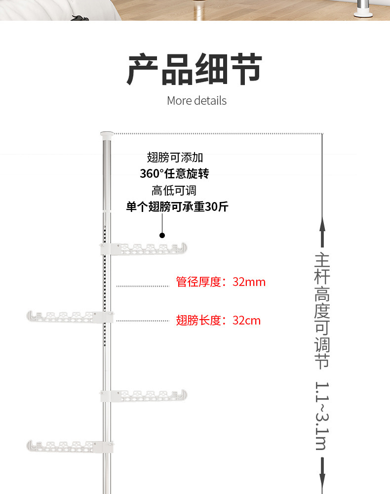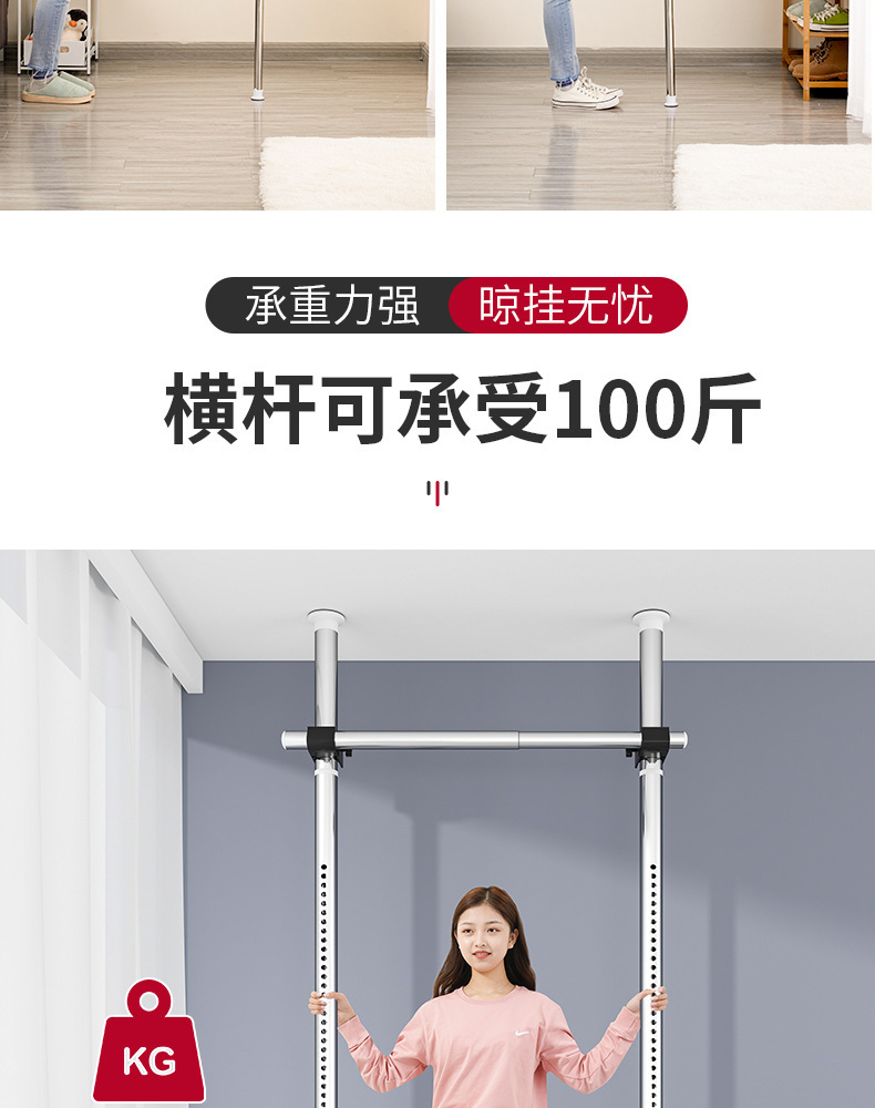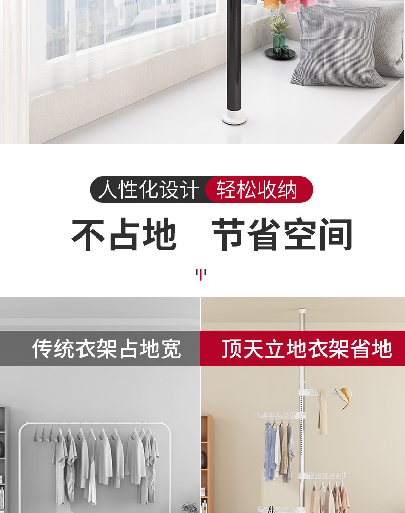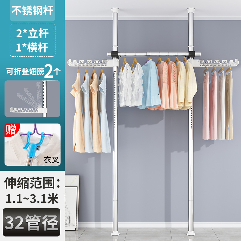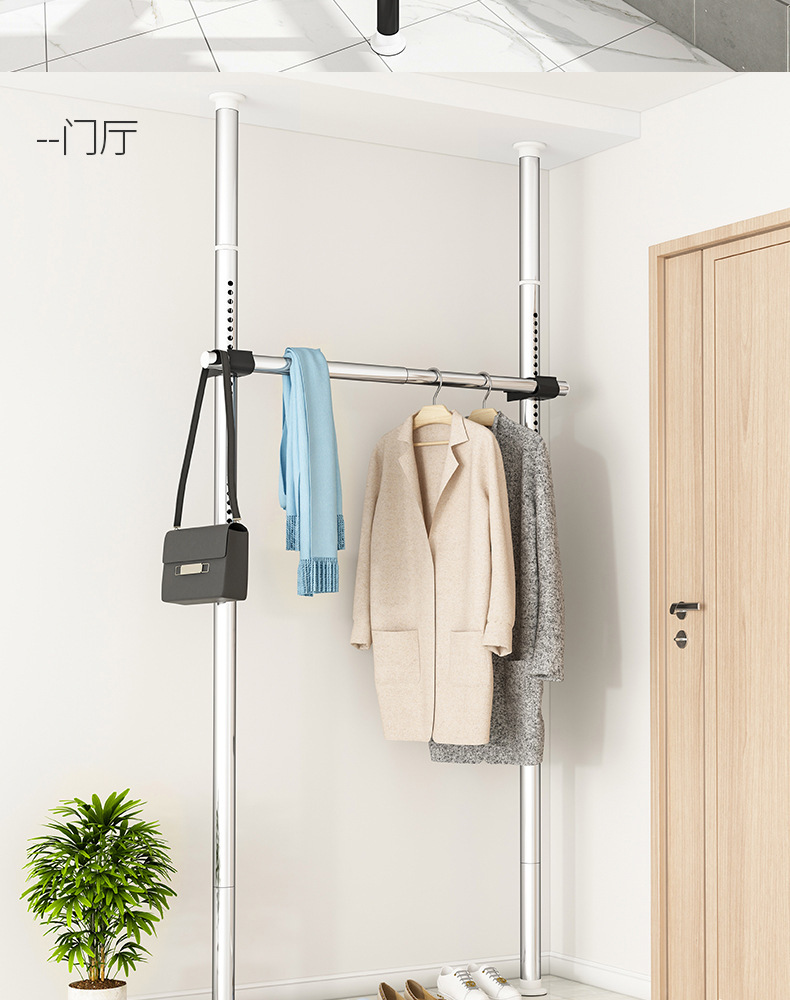 탑 플로어 옷 옷걸이 보관 랙 매달려있는 펀치 프리 텔레스코픽 로드 발코니 바닥 침실 옷 교수형 랙스토어 가기