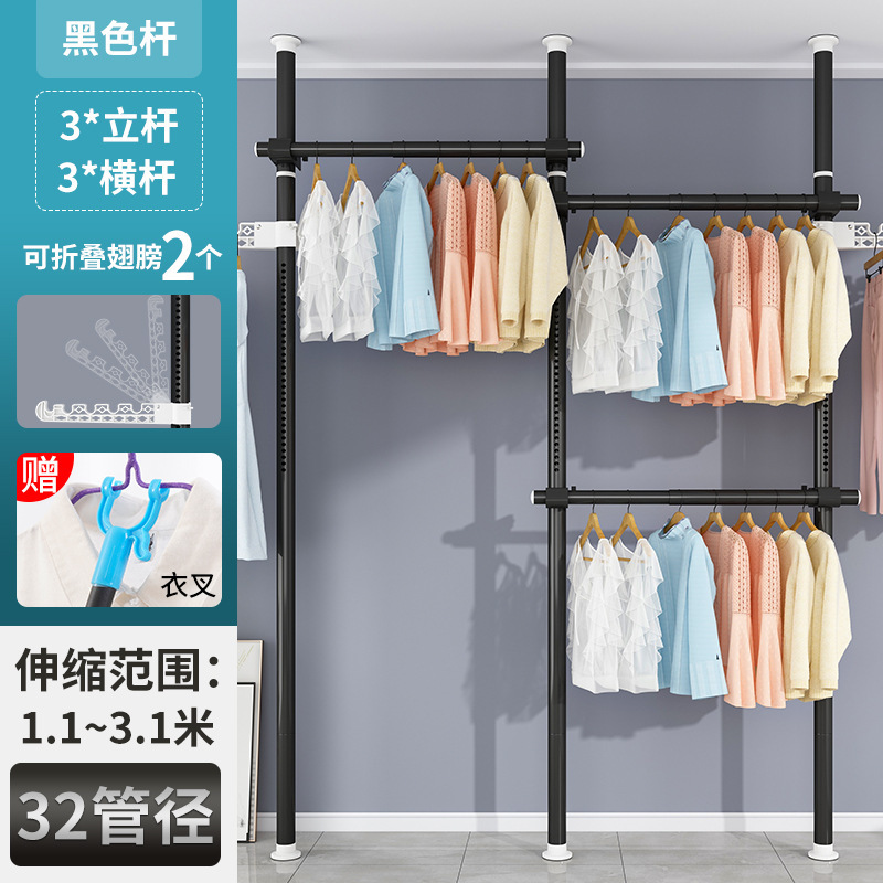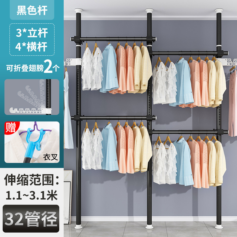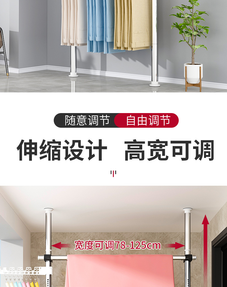탑 플로어 옷 옷걸이 보관 랙 매달려있는 펀치 프리 텔레스코픽 로드 발코니 바닥 침실 옷 교수형 랙