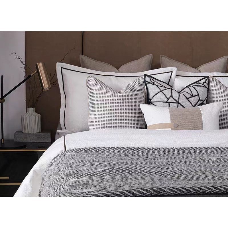 가벼운 고급 현대 침구 모델 방 부드러운 장식 회사 가구 전시 홀 상점 장식 침구 멀티 피스 세트