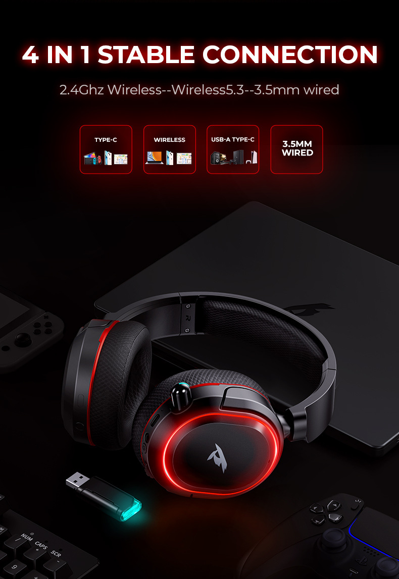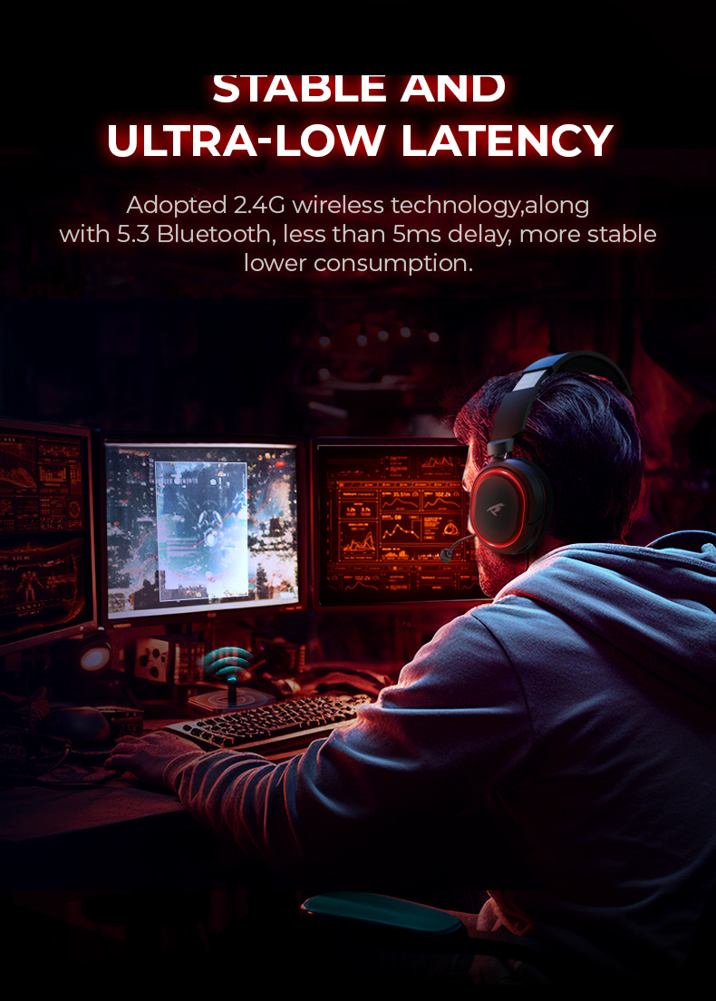 Picun G2 무선 2.4G 헤드 장착형 Bluetooth 헤드셋 빛나는 게임 낮은 대기 시간 7.1 사운드 효과