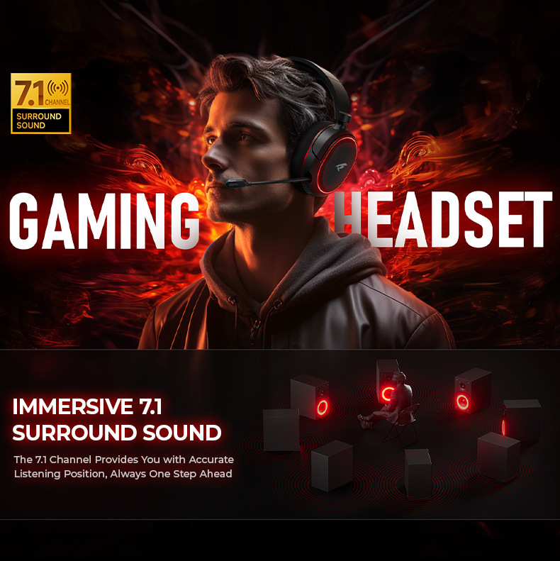 Picun G2 무선 2.4G 헤드 장착형 Bluetooth 헤드셋 빛나는 게임 낮은 대기 시간 7.1 사운드 효과스토어 가기