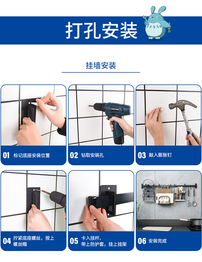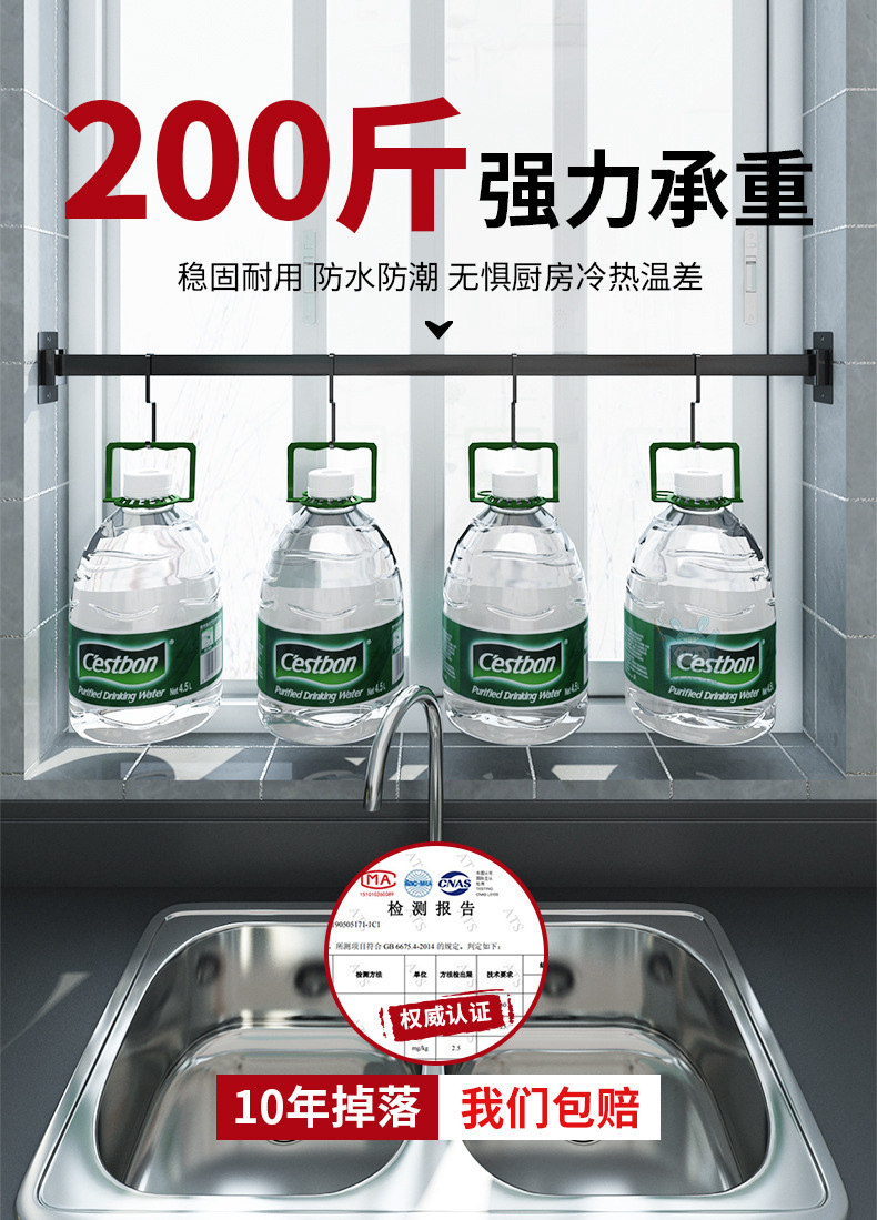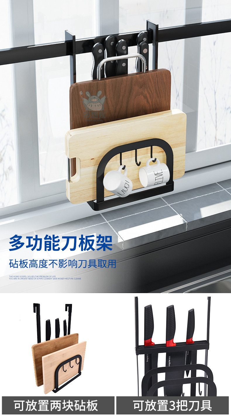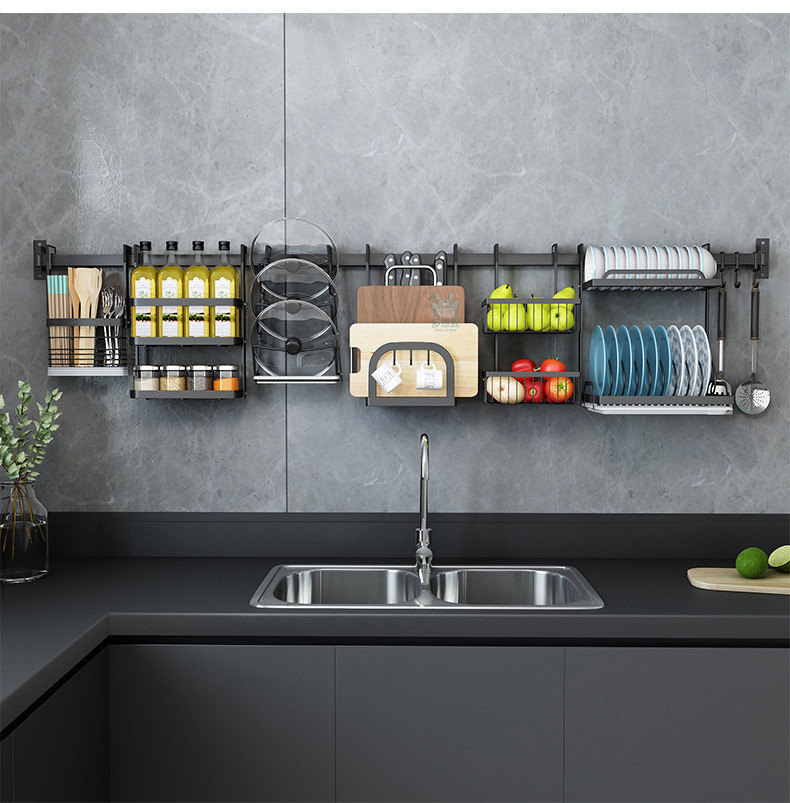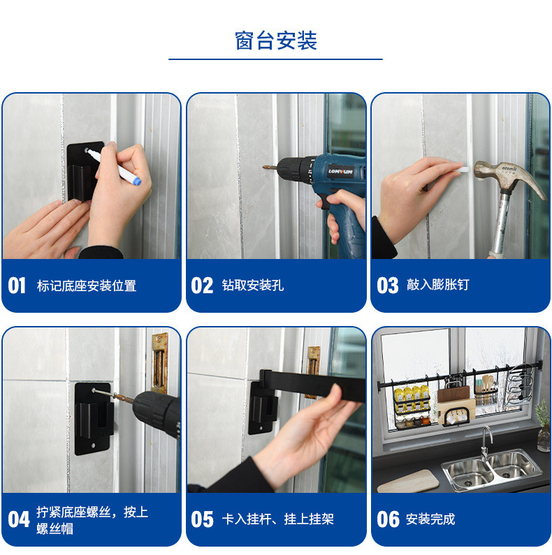 천공되지 않은 스테인레스 스틸 다기능 주방 창문 보관 랙 창 벽걸이 블랙 교수형 바 후크스토어 가기