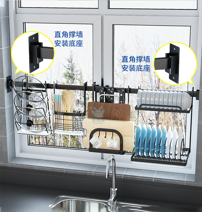 천공되지 않은 스테인레스 스틸 다기능 주방 창문 보관 랙 창 벽걸이 블랙 교수형 바 후크
