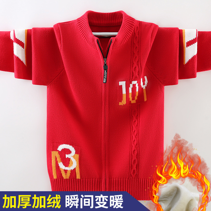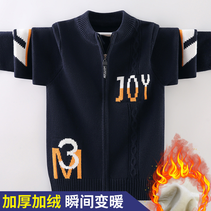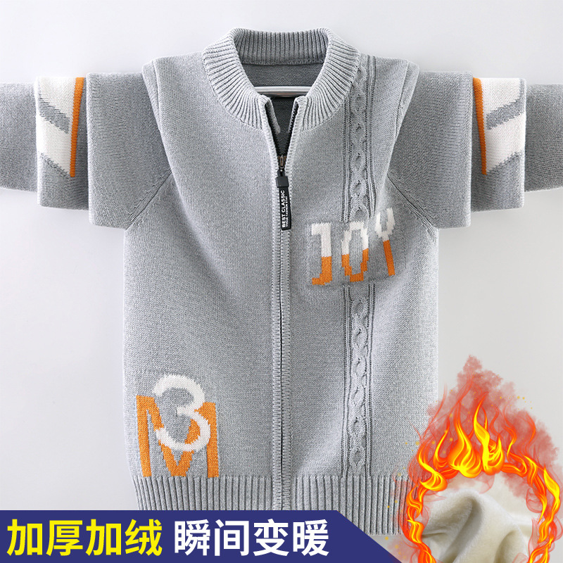 소년 스웨터 가을과 겨울 어린이 지퍼 카디건 봄과 가을 겉옷 탑 중간 및 큰 어린이 면사 스웨터 기모 두껍게스토어 가기