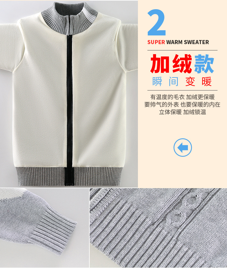 소년 스웨터 가을과 겨울 어린이 지퍼 카디건 봄과 가을 겉옷 탑 중간 및 큰 어린이 면사 스웨터 기모 두껍게