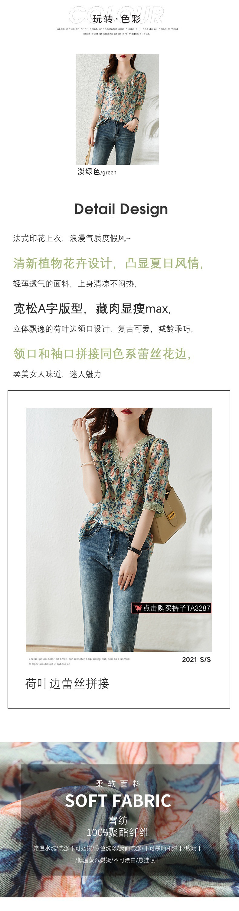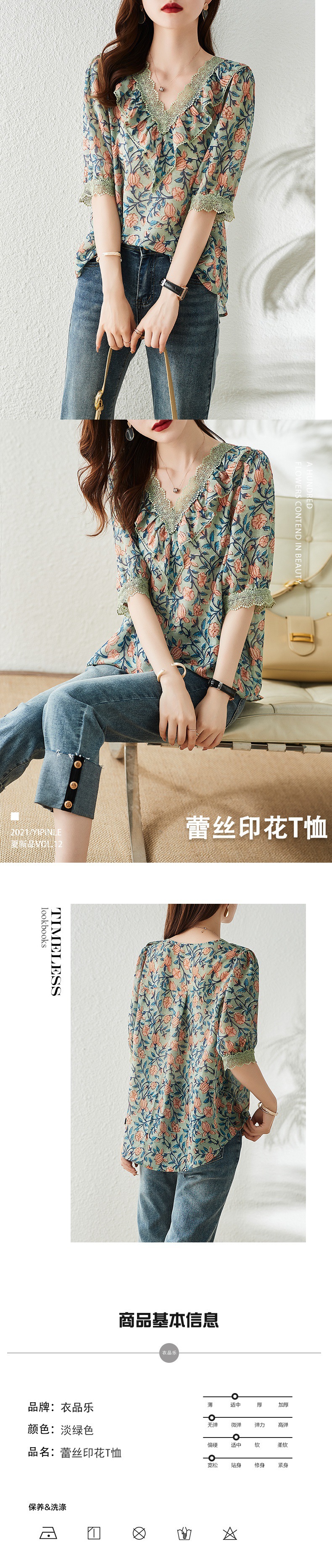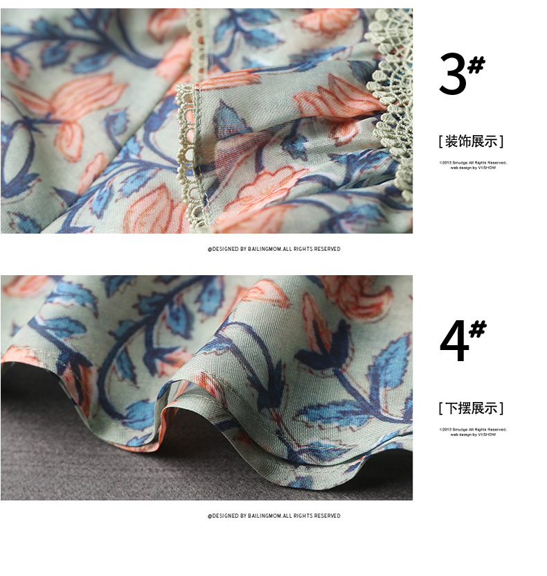 V 넥 플로럴 쉬폰 셔츠 여성 여름 반팔 2023 새로운 느슨한 플러스 사이즈 통통녀 디자인 탑스토어 가기