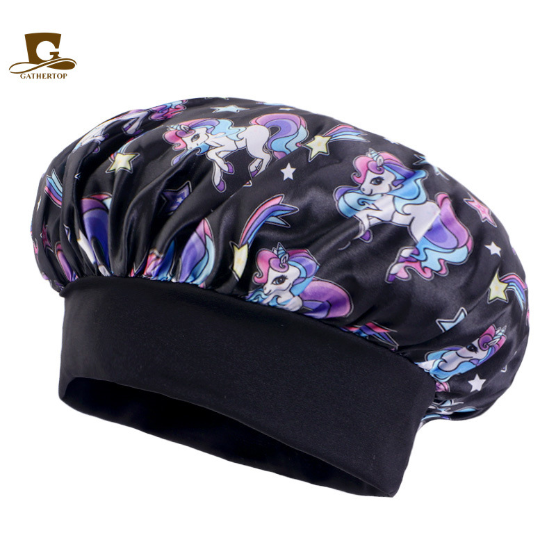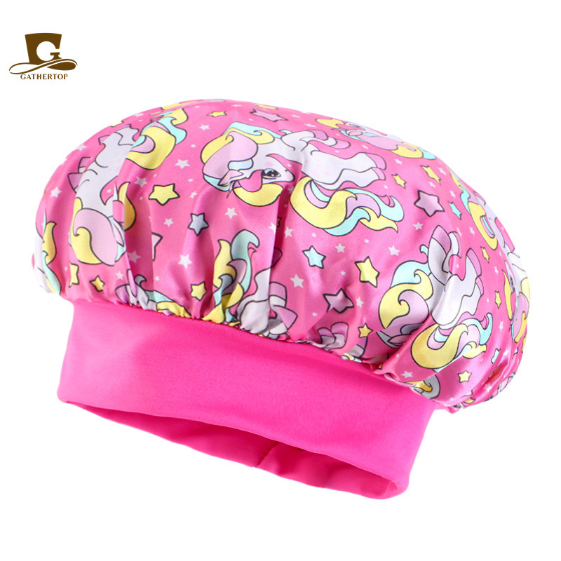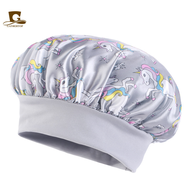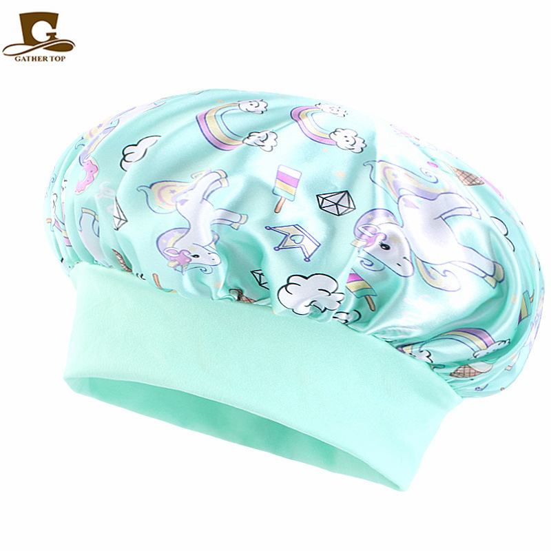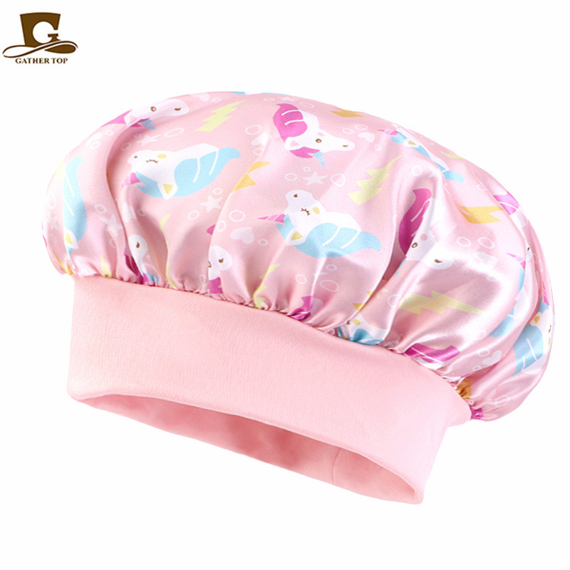 유니콘 만화 인쇄 어린이 새틴 나이트캡 아기 헤어 케어 캡 JDKB-21A-2