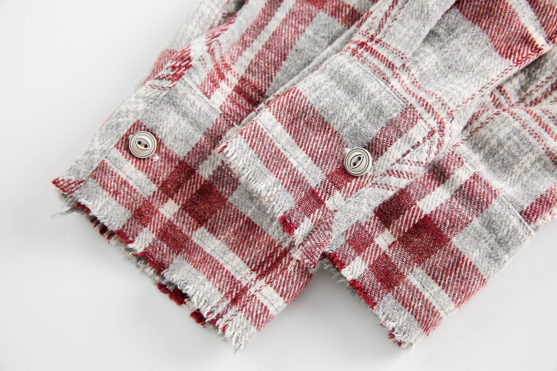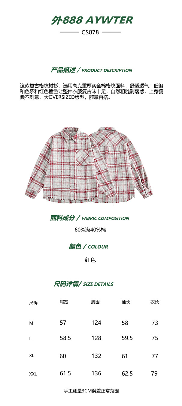 EONMODISH 남성 의류 | 2024 봄과 여름 새로운 리얼 샷 미국 복고풍 격자 무늬 긴 소매 셔츠스토어 가기