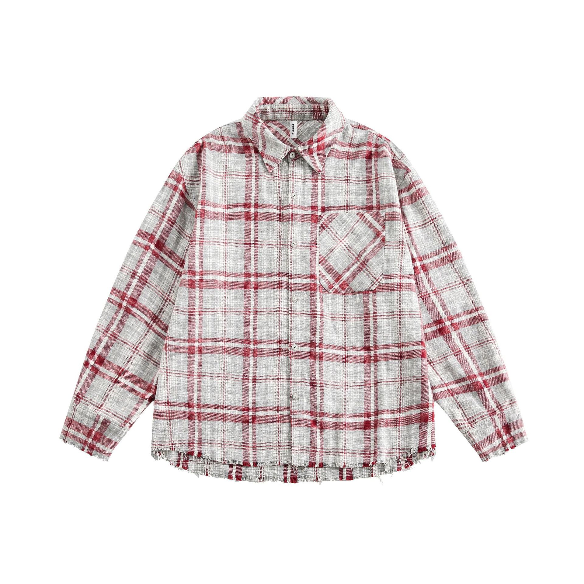 EONMODISH 남성 의류 | 2024 봄과 여름 새로운 리얼 샷 미국 복고풍 격자 무늬 긴 소매 셔츠