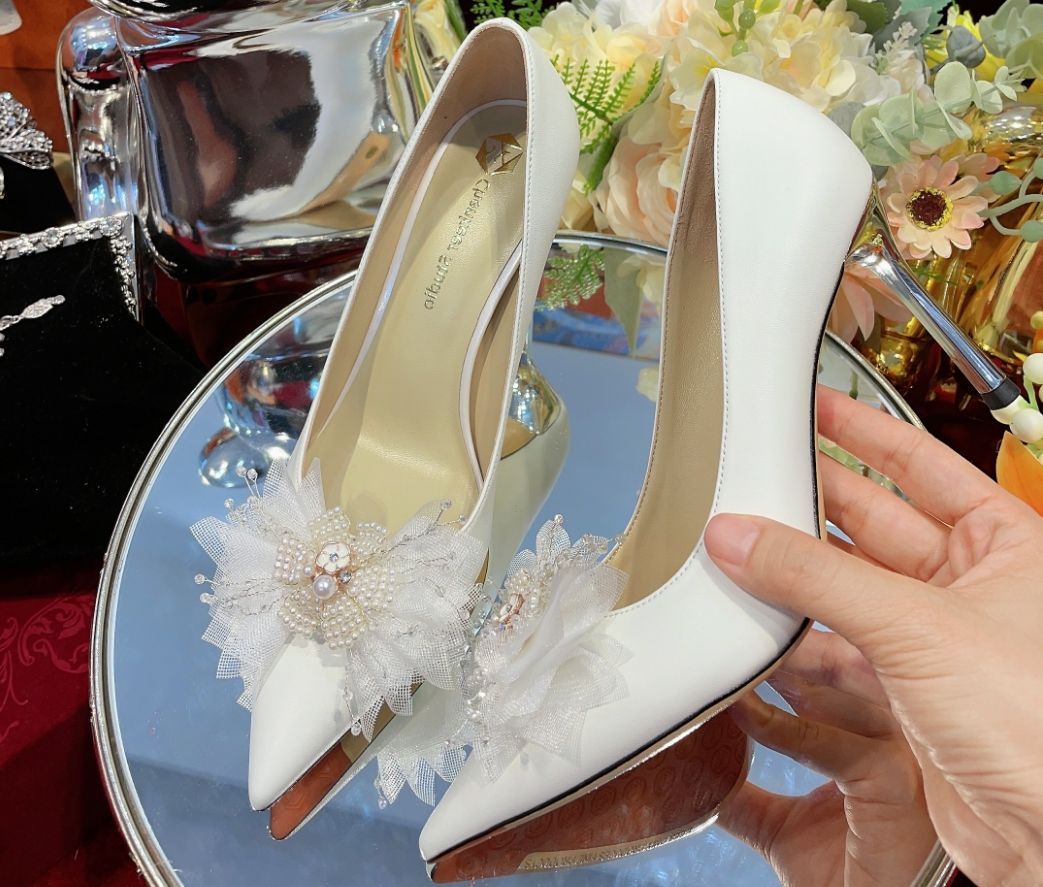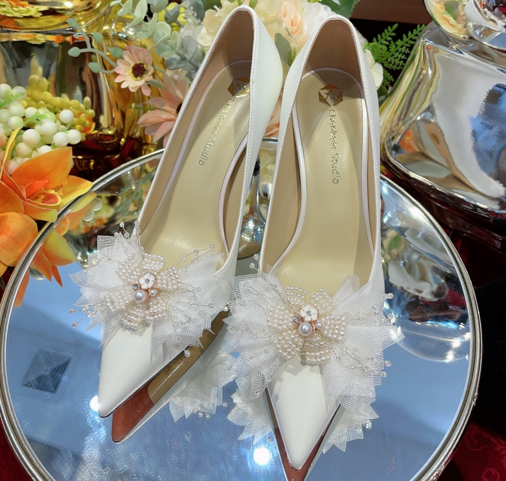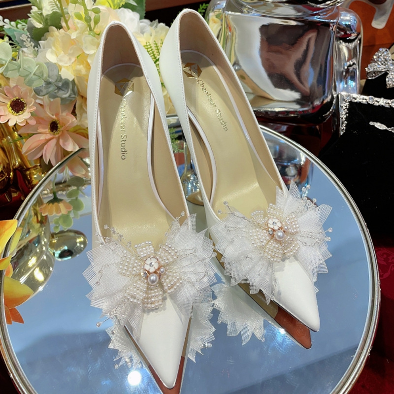프랑스 결혼식 신발 Xiuhe 메인 웨딩 원피스 양방향 착용 신부는 피곤하지 않은 발 2023 새로운 흰색 하이힐 여성 스틸레토 힐스토어 가기